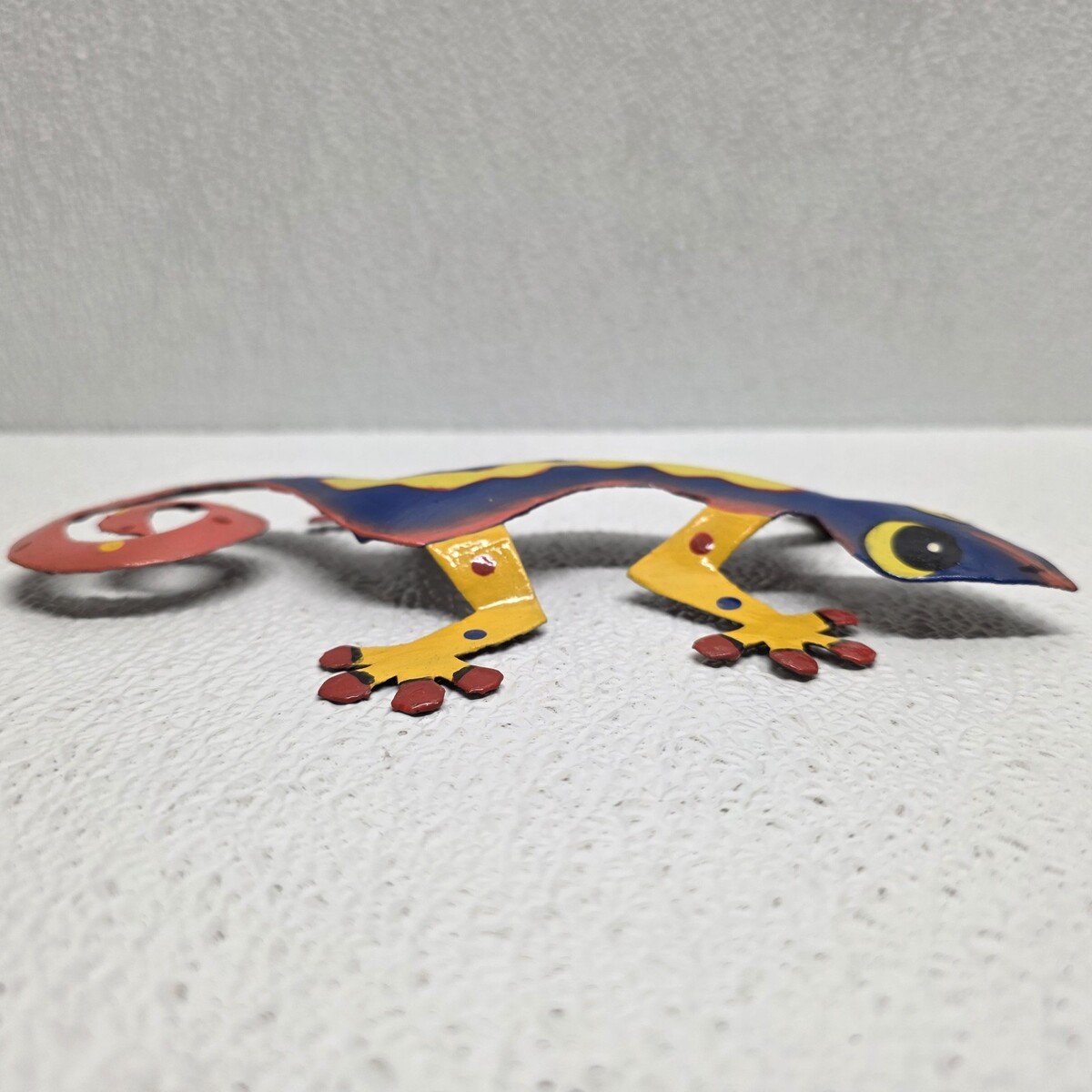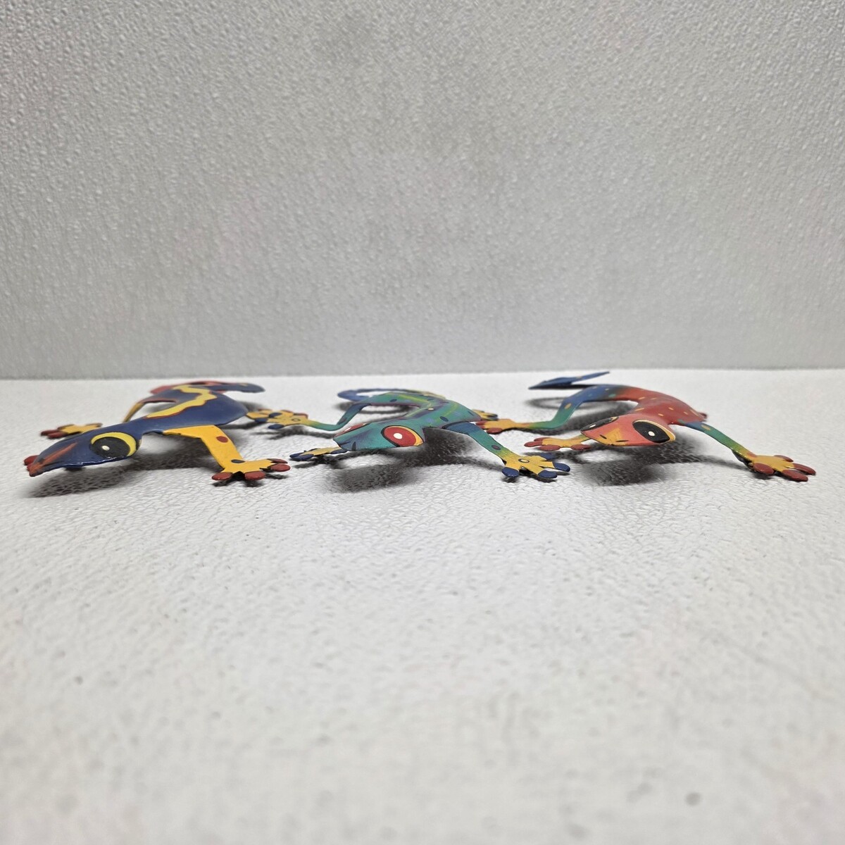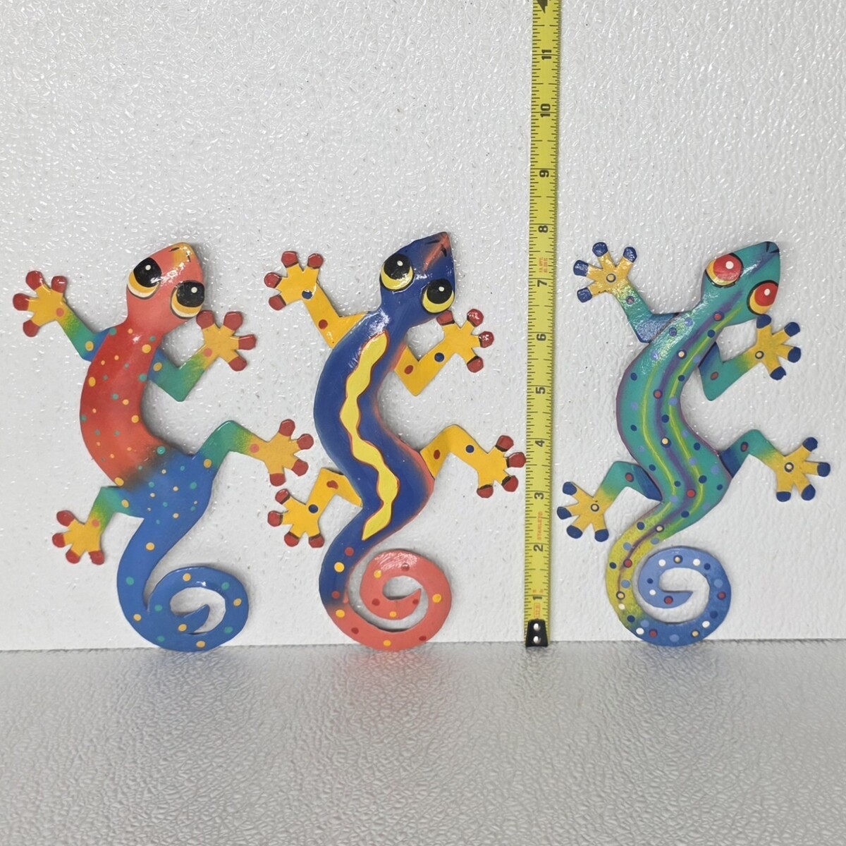 Set Of 3 Hanging Metal Colorful Gecko Lizards Made In Haiti. Images show actual set that will ship.