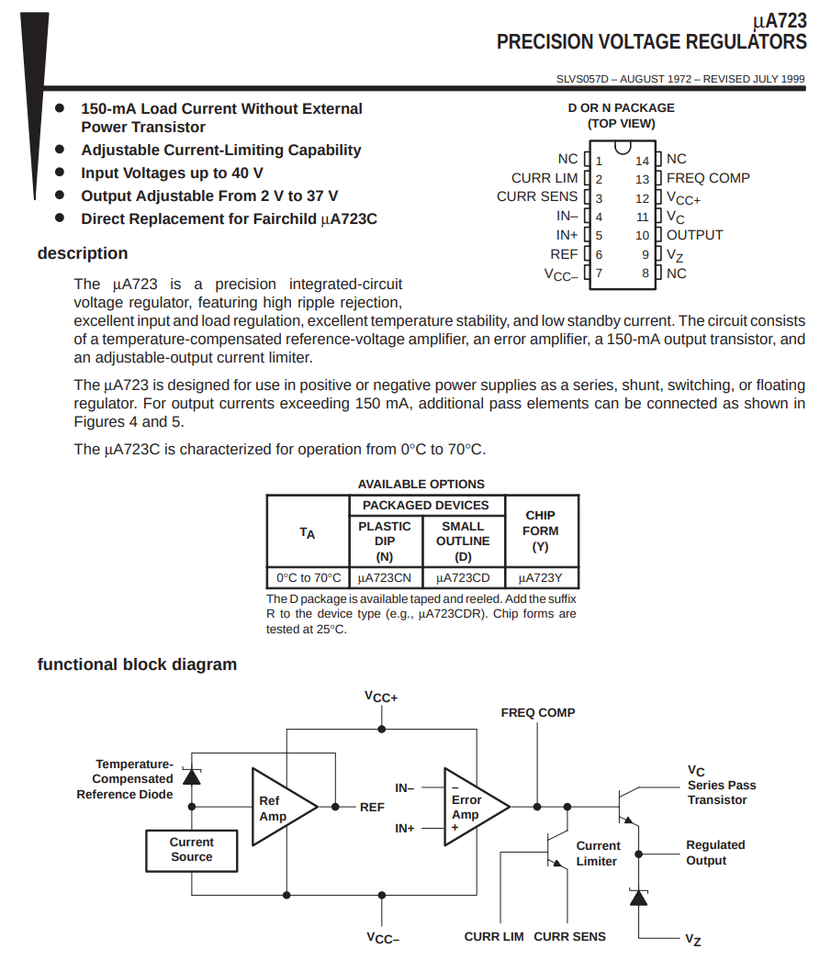 10PCS UA723CN TI Precision Adjustable Voltage Regulator IC 2-37V 150mA DIP-14