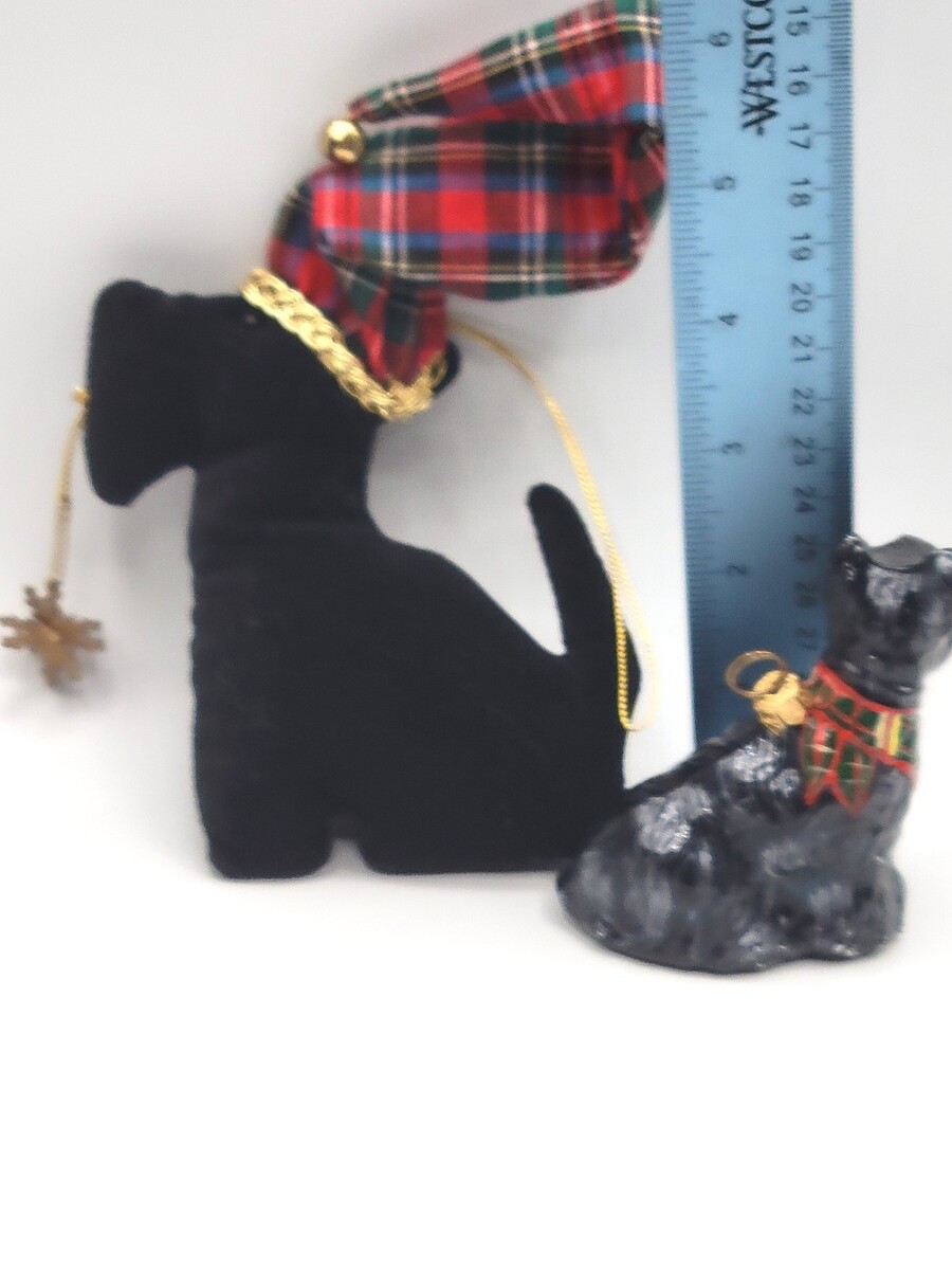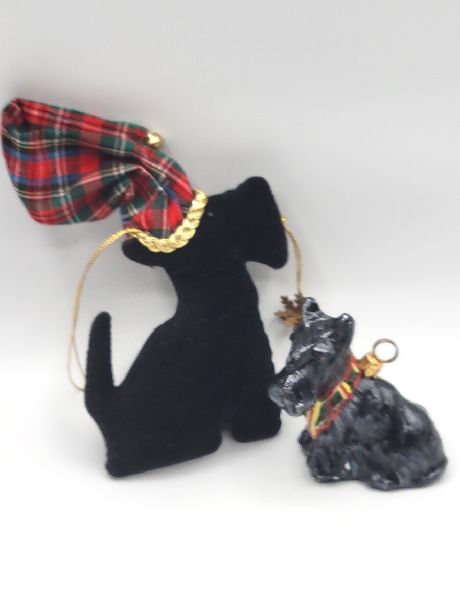 2 Scotty Terrier Puppy Dog Christmas Tree Ornament Pet Animal Glass & Fabric