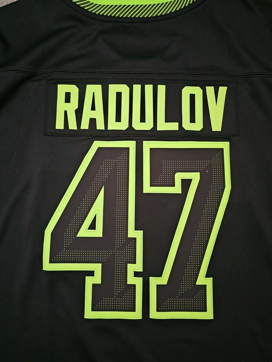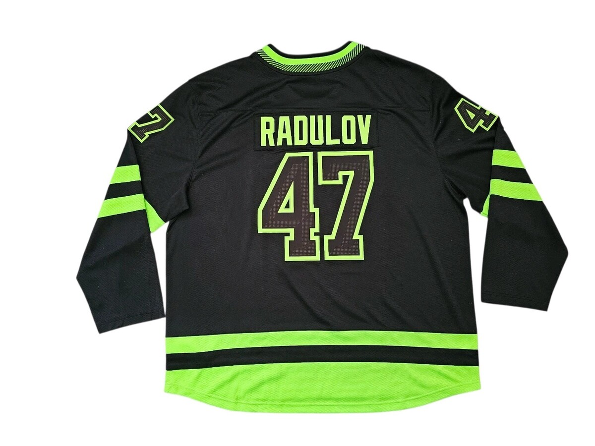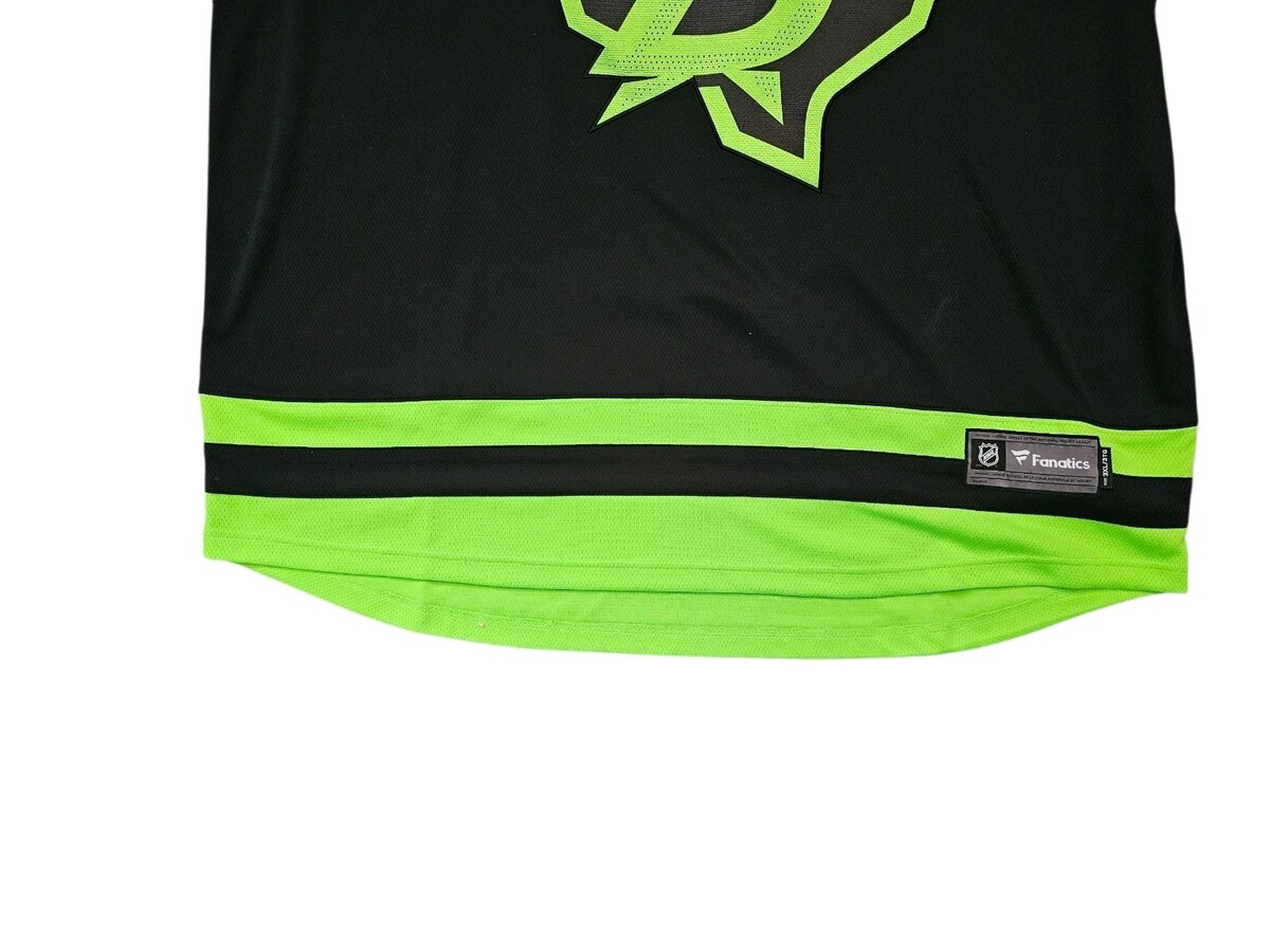 The product is a Fanatics 2020/21 Dallas Stars Alexander Radulov alternate hockey jersey in size 3XL. This officially licensed National Hockey League (NHL) jersey features the player's name and number on the back, making it a must-have for male fans of the Dallas Stars. The black And Electric green jersey is designed specifically for hockey enthusiasts looking to show their support for the team during the regular season. Made in Indonesia, this jersey is a high-quality product for any fan of Alexander Radulov or the Dallas Stars.