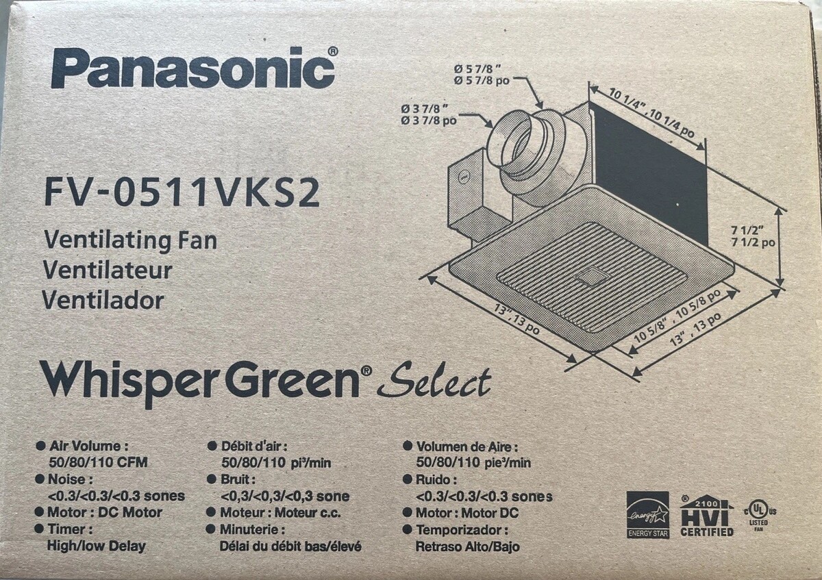 Panasonic FV-0511VKS2 Bathrm Fan, 4In Duct and 47 similar items