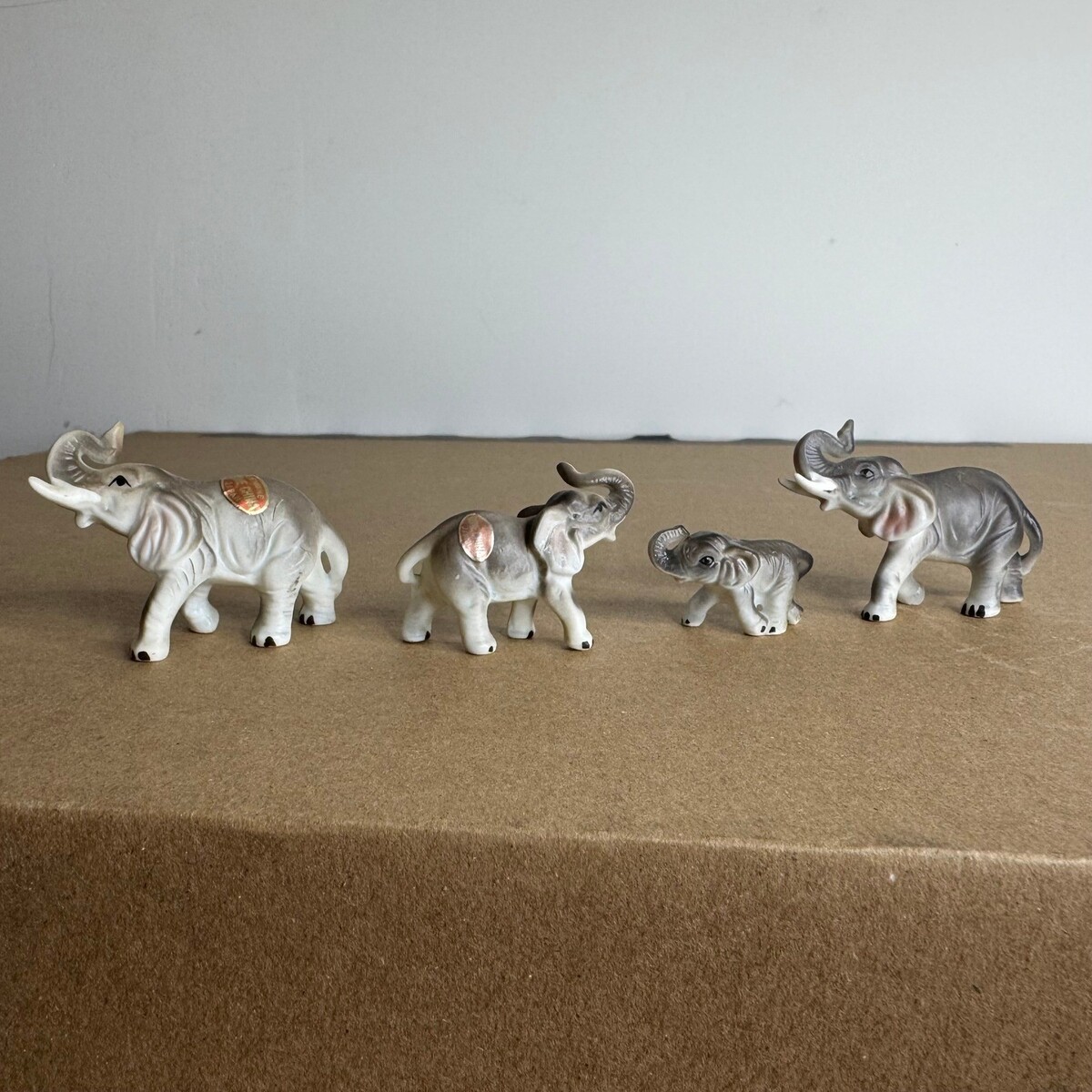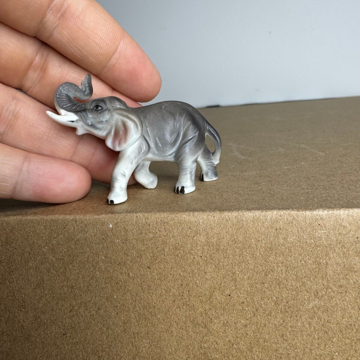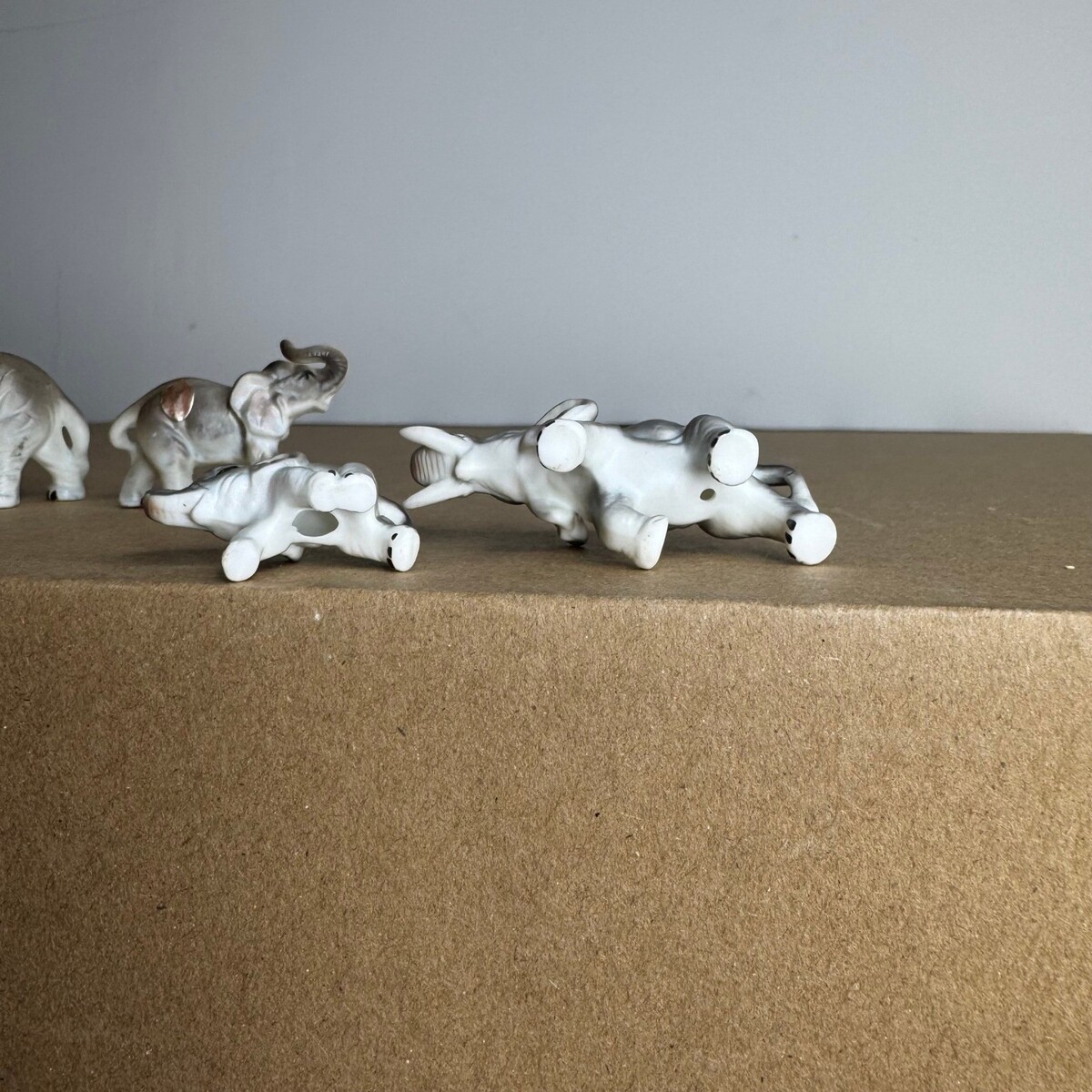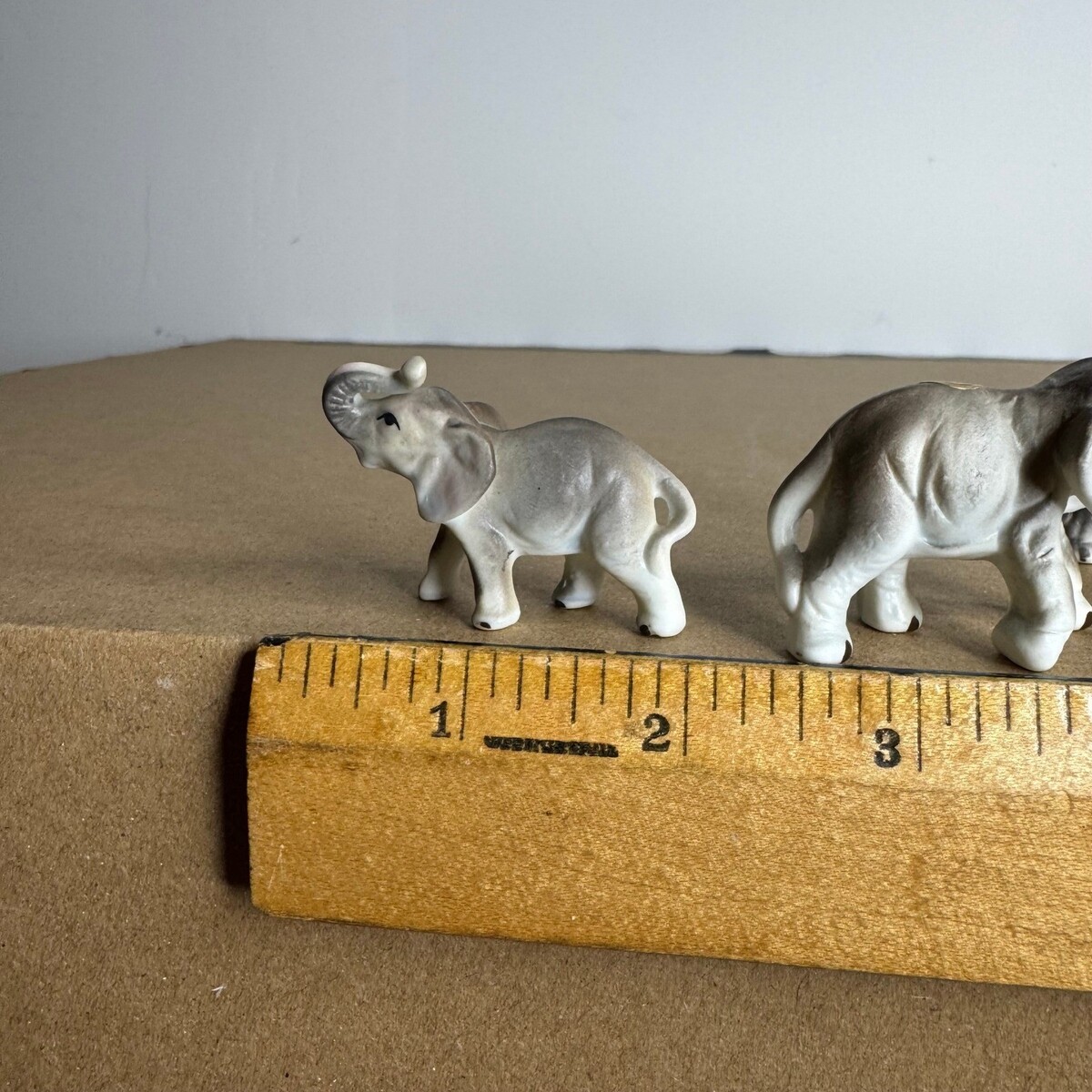 Vintage Ceramic Elephant Figurines Micro Miniature Gray Baby Animals