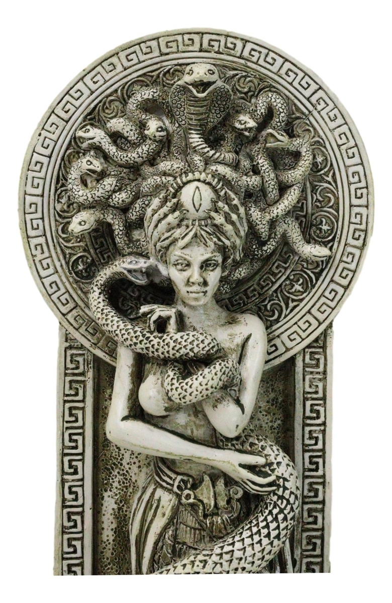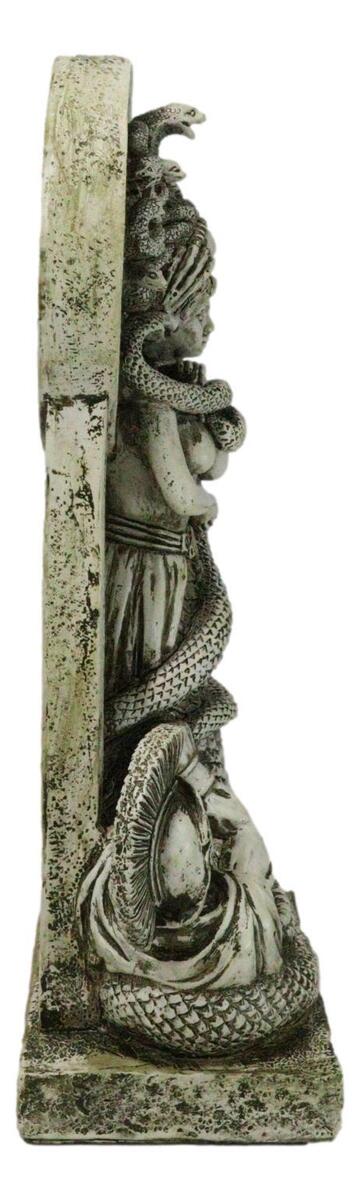 Greek Goddess Medusa With Hair Of Snakes And Serpent Tail By Altar Figurine