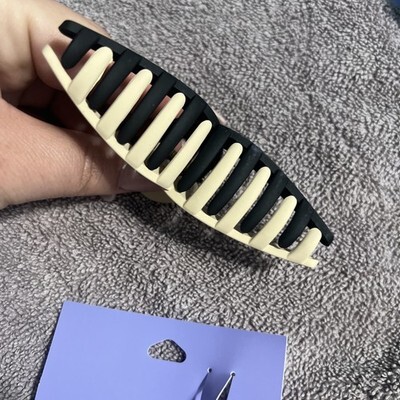 Claire’s Beige Black Matte Loop Hair Claw Clip Modern Minimalist Style New