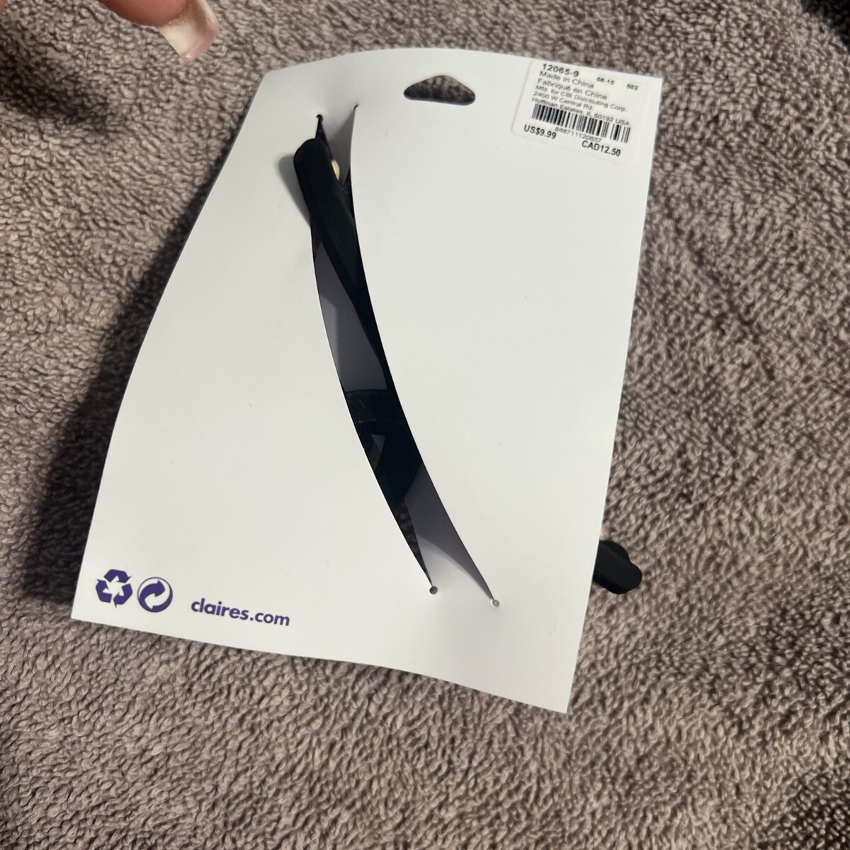 Chic and modern hair accessory from Claire?s featuring a beige and black matte finish and unique looped design. Perfect for creating an effortless updo, securing thick or thin hair, and adding a touch of minimalist style to your everyday look. Brand new and still attached to the original Claire?s display card.