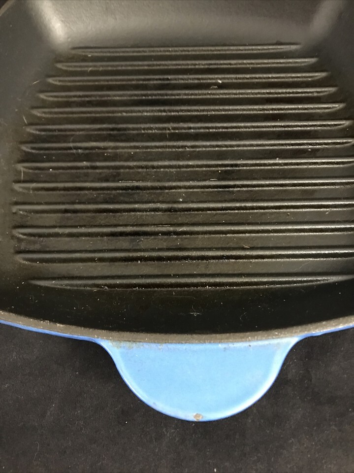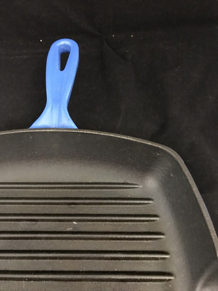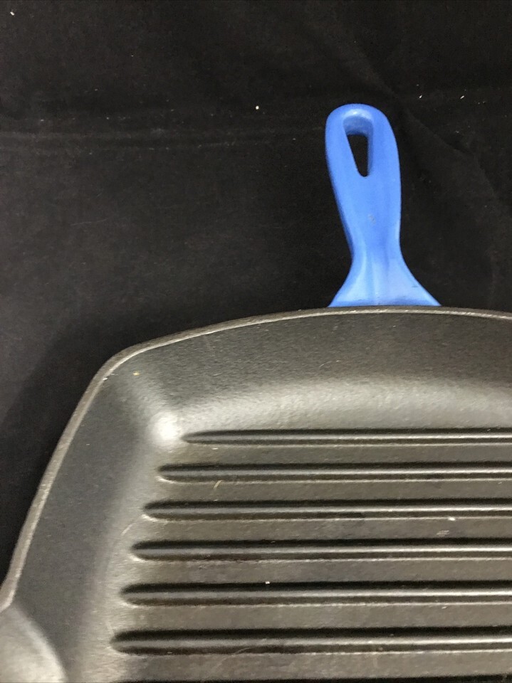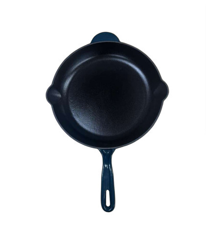 Cast Iron Skillet 10' Blue Enamel Coating Grill Bottom Pour Sides KG Cookware