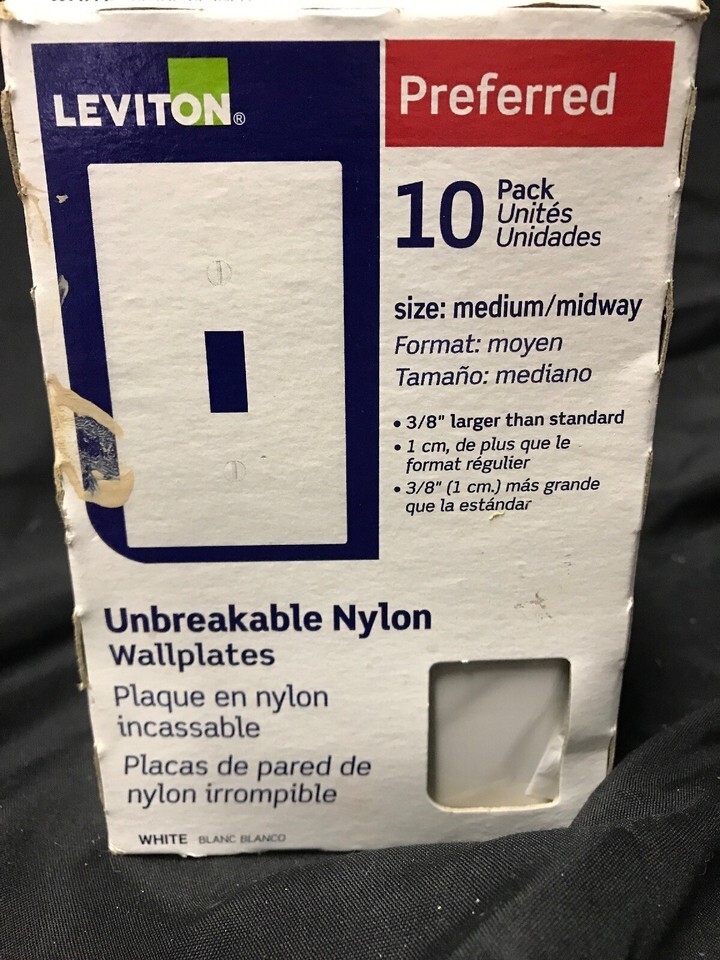 Leviton Wall-plate 1-Gang Midway Toggle Nylon White 10-Pack NEW NIB Kg