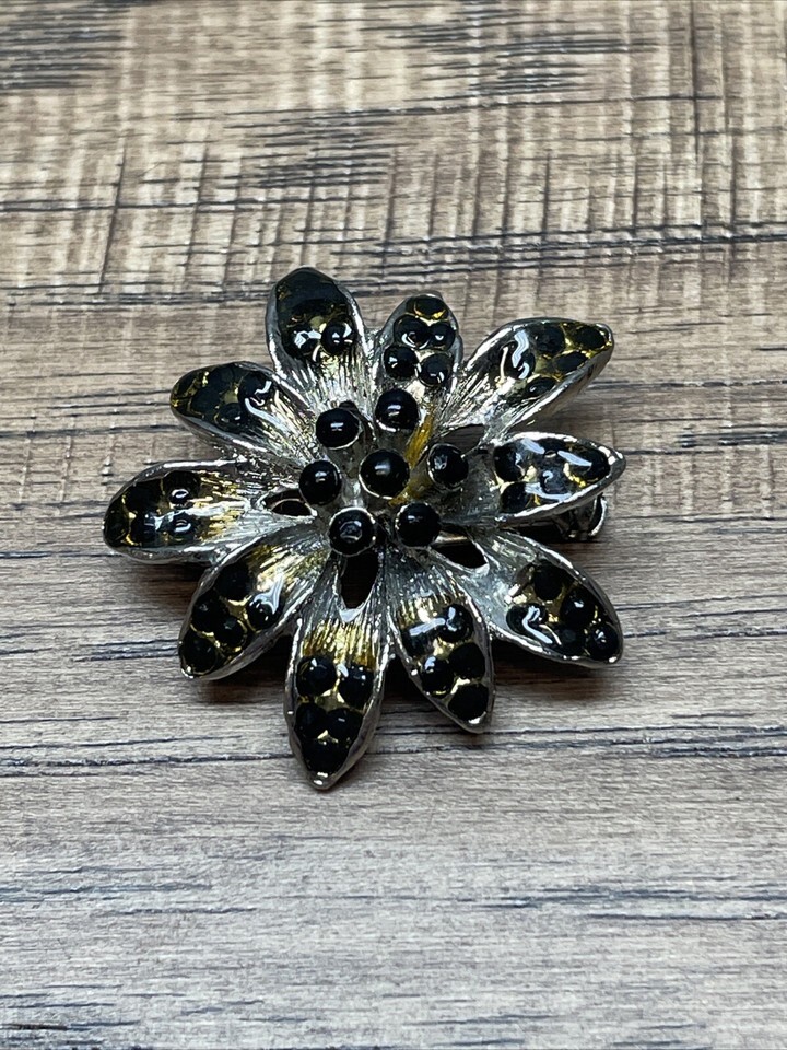 Vintage Silver Tone Black Enamel Flower and 50 similar items