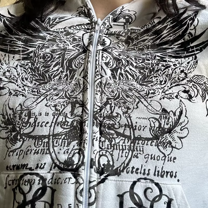 Cyber Grunge Hoodie Y2K Emo Zip Up Sweatshirts