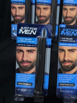 Touch up your beard or brows in seconds with Just For Men 1-Day Beard Brow Color in Darkest Brown/Black. This temporary color applies easily and dries quickly, giving you fuller, well-defined facial hair with zero commitment.