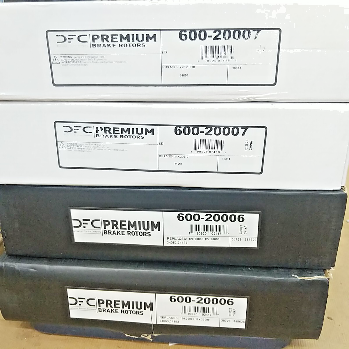 Exact item set is shown. New open box complete front (vented) and rear (solid) disc brake rotor set with original packaging. Made in China. No returns on installed items or partial sets. This item is a new, opened customer return. It has been inspected and passed quality control to insure the condition described and contents are accurate. Please review actual photos as stock photos are not the actual item, our photos are. You will ONLY receive exactly what is shown in photos, regardless of what might have originally been included. Please review our business policies in our store for information regarding returns, shipping and warranties.