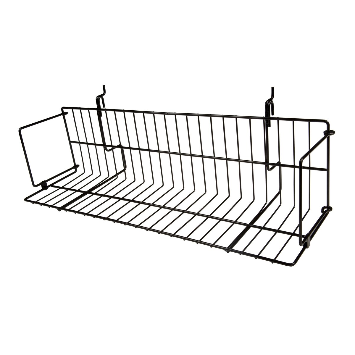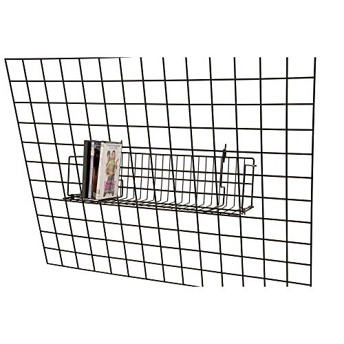 This black wire shelf can be used for DVD's, CD's, books, picture frames and any packaged item. Knocked down construction allows for reduced freight cost. Shelves have all-purpose attachment that fits slatwall, gridwall as well as pegboard. Sold in a pack of 6 shelves.