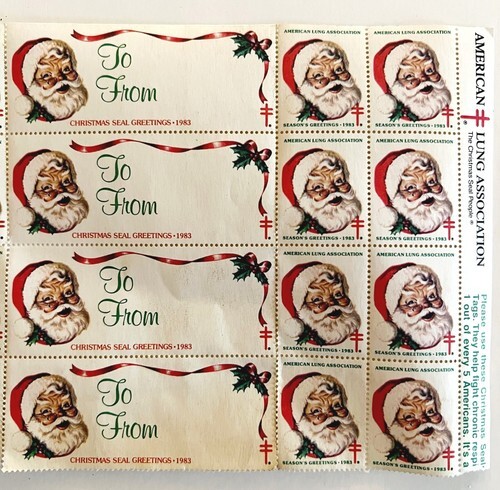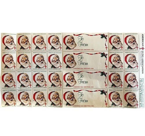 1983 Santa Claus Greeting Stamps Lot Of 28 American Lung Vintage Christmas E48