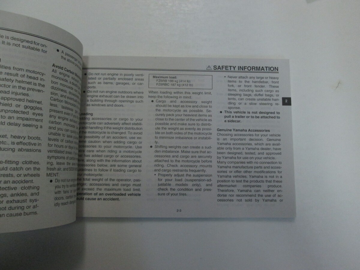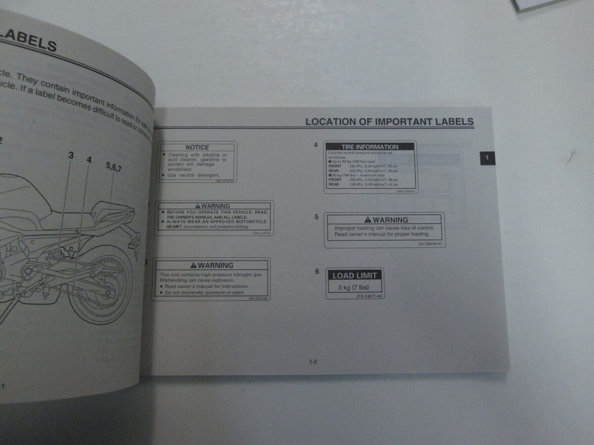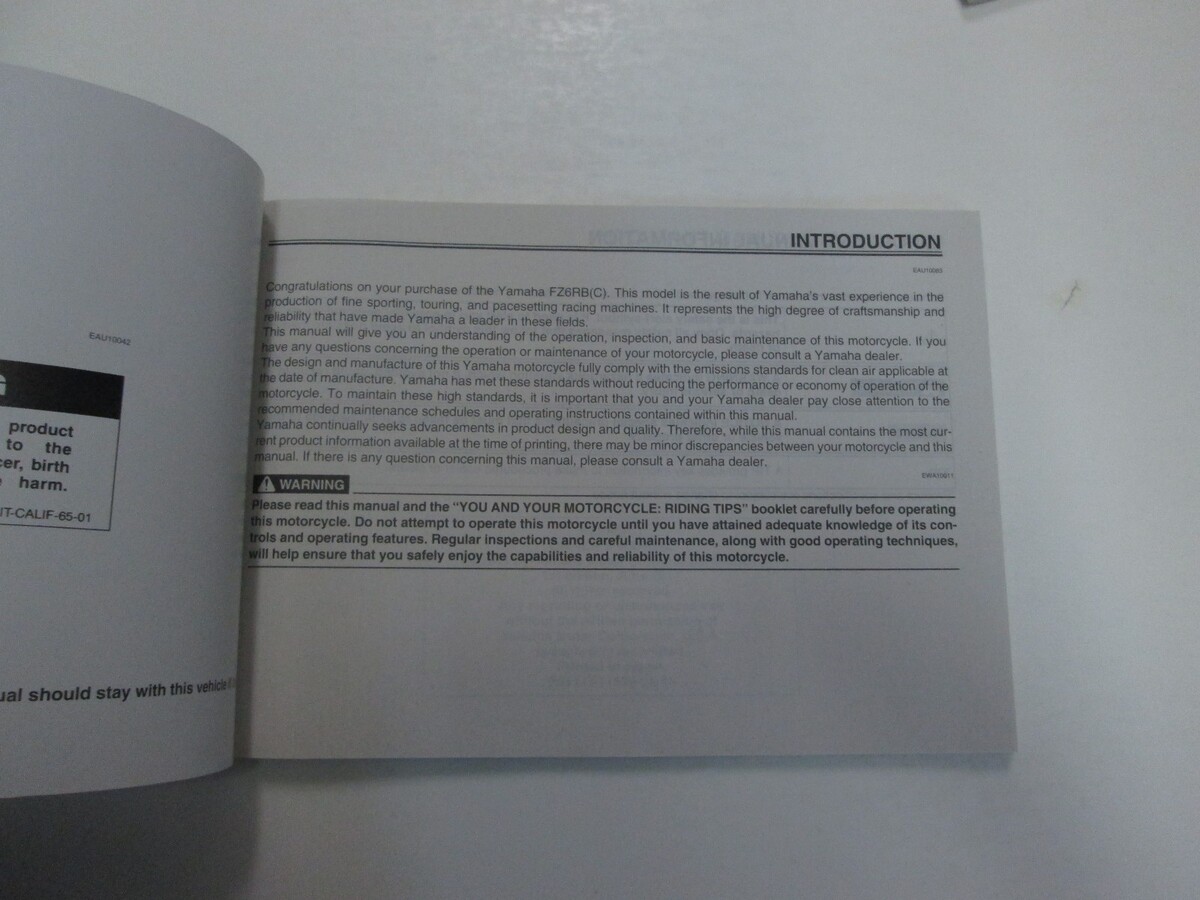 NEW 2012 YAMAHA FZ6R FZ6RB (C) OWNERS MANUAL