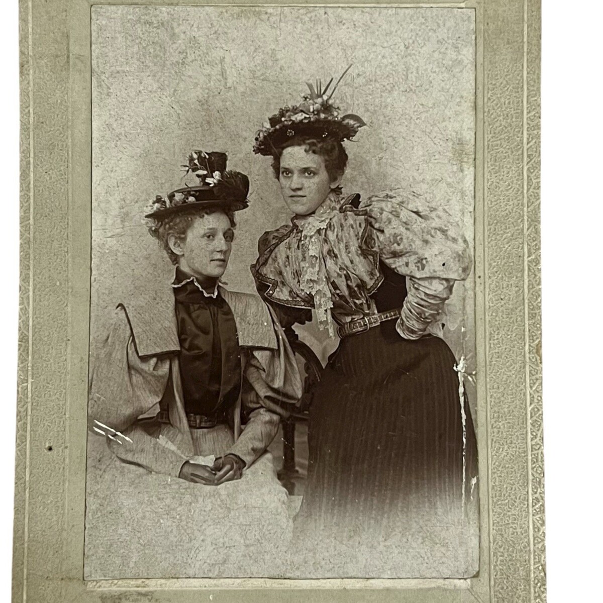Antique Cabinet Photo Two Women Floral Hats and 50 similar items