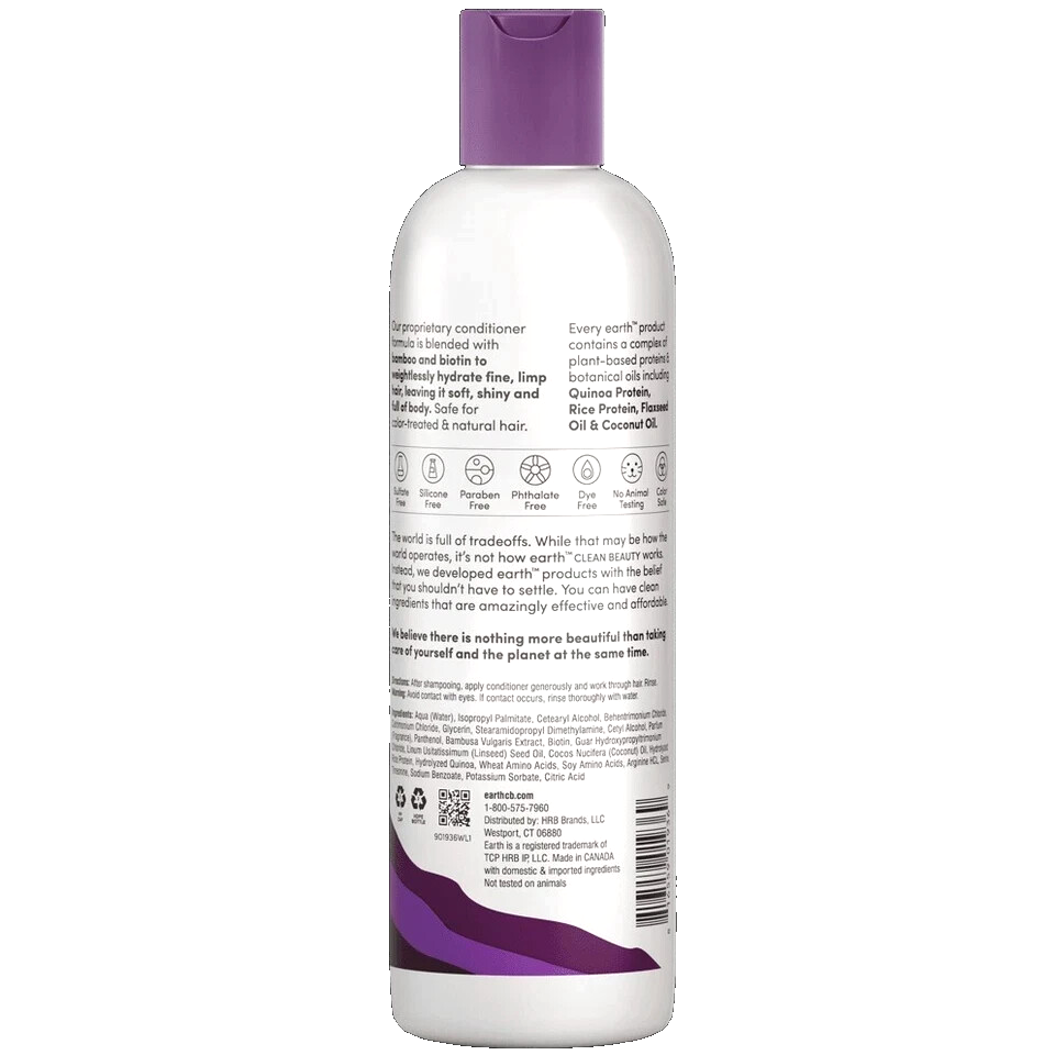 ( Lot of 2 Bottles ) Earth Clean Beauty Weightless Volume Conditioner w/ Bamboo Biotin 12 oz Each
