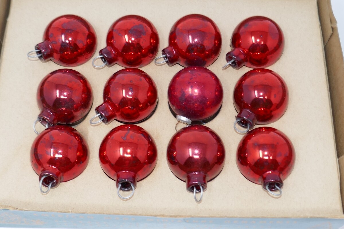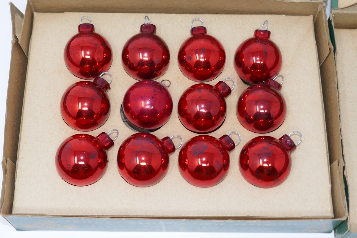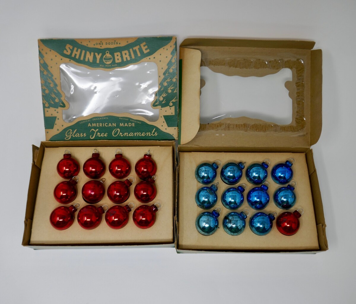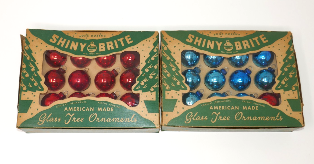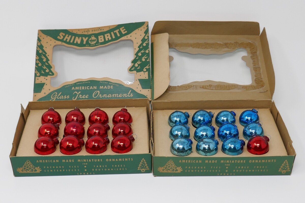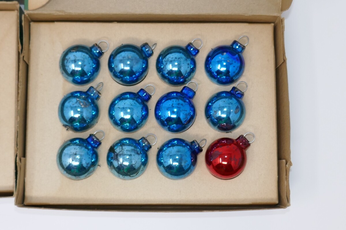 Shiny Brite Mini Feather Vintage Blue Red Glass Tree Ornaments