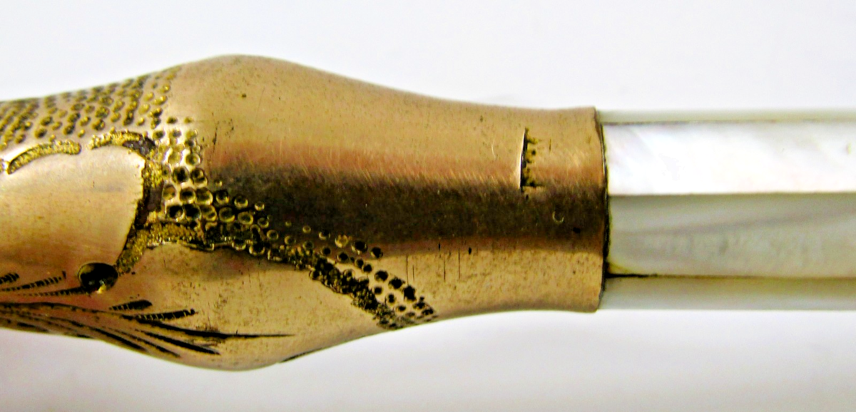 Antique Cane/Parasol Handle Gold and Mother of Pearl