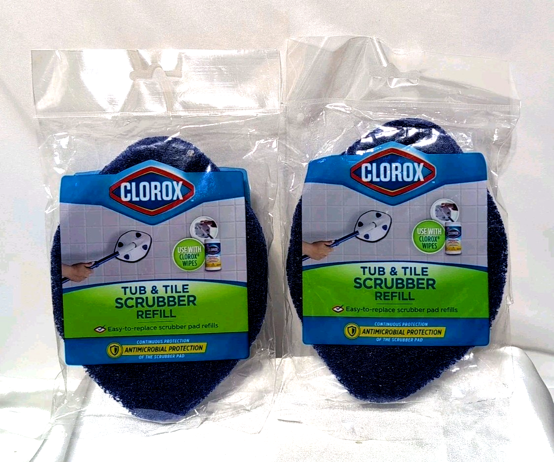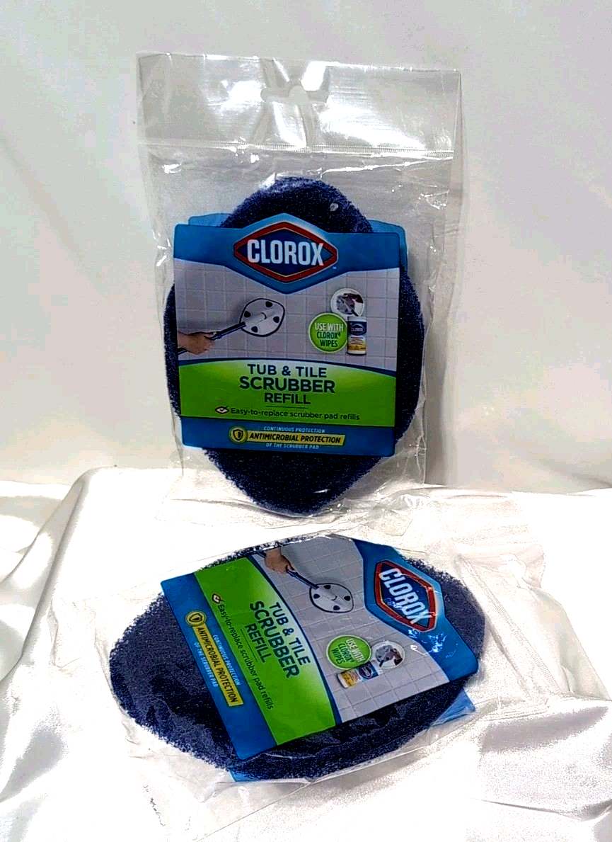 2X Clorox Tub & Tile Scrubber Refill Pads Easy Snap-On Replacements Cleaning NEW