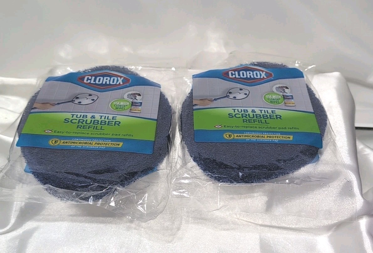 2X Clorox Tub Tile Scrubber Refill Pads Easy Snap-On Replacements Cleaning Bathroom NEW
