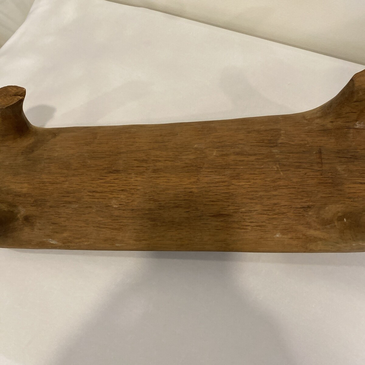 Offered is this American Folk Art Carved Pig Footed Tray. Beautifully carved from a single piece of hardwood with no damages or areas of repairs with minimal antique wear or staining (see images). It measures 29 1/2" long, 6 1/2" wide and 6 1/2" tall. A very unique piece sure to add to any decor or collection!