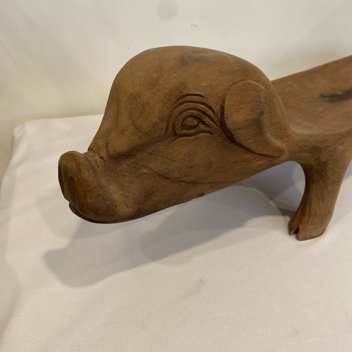 American Folk Art Carved Wooden Pig Tray Sculpture Standing One Piece WOOD!