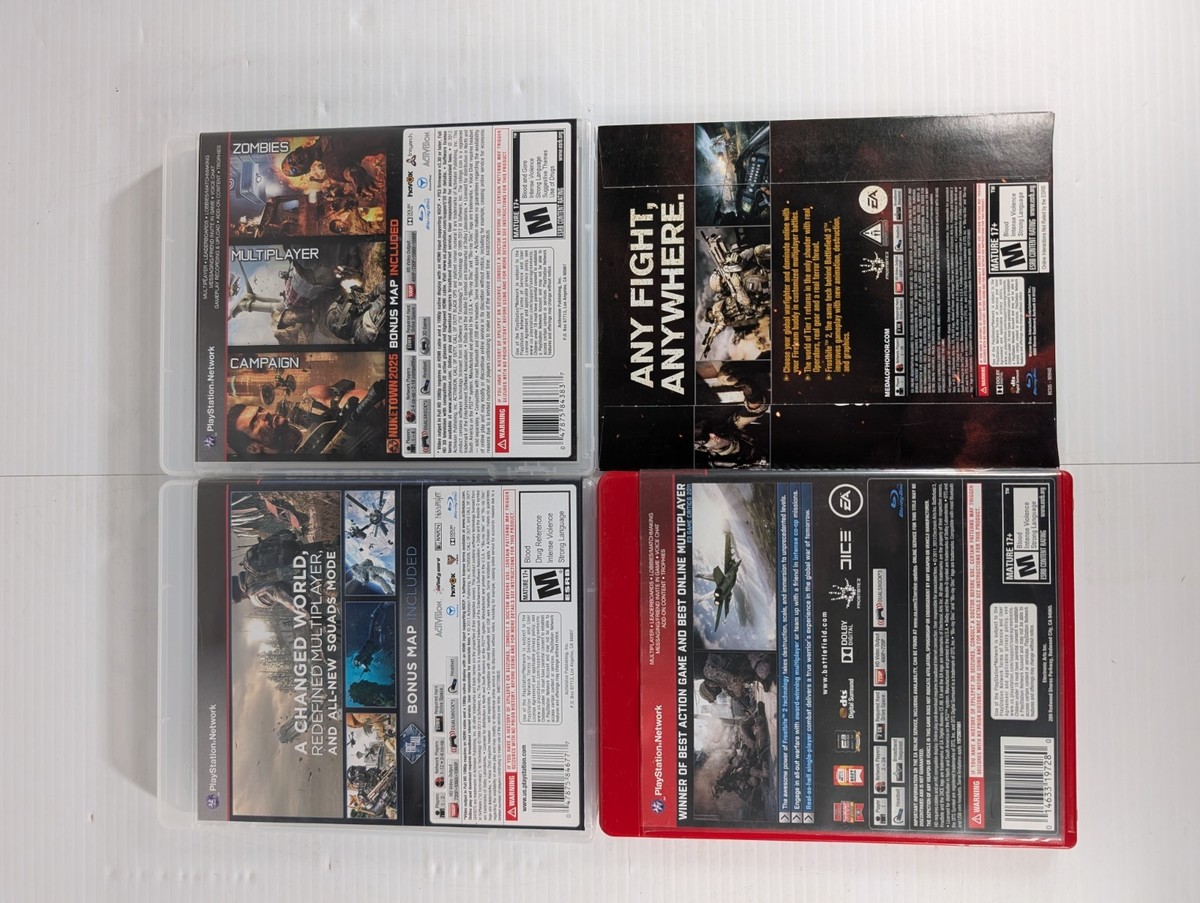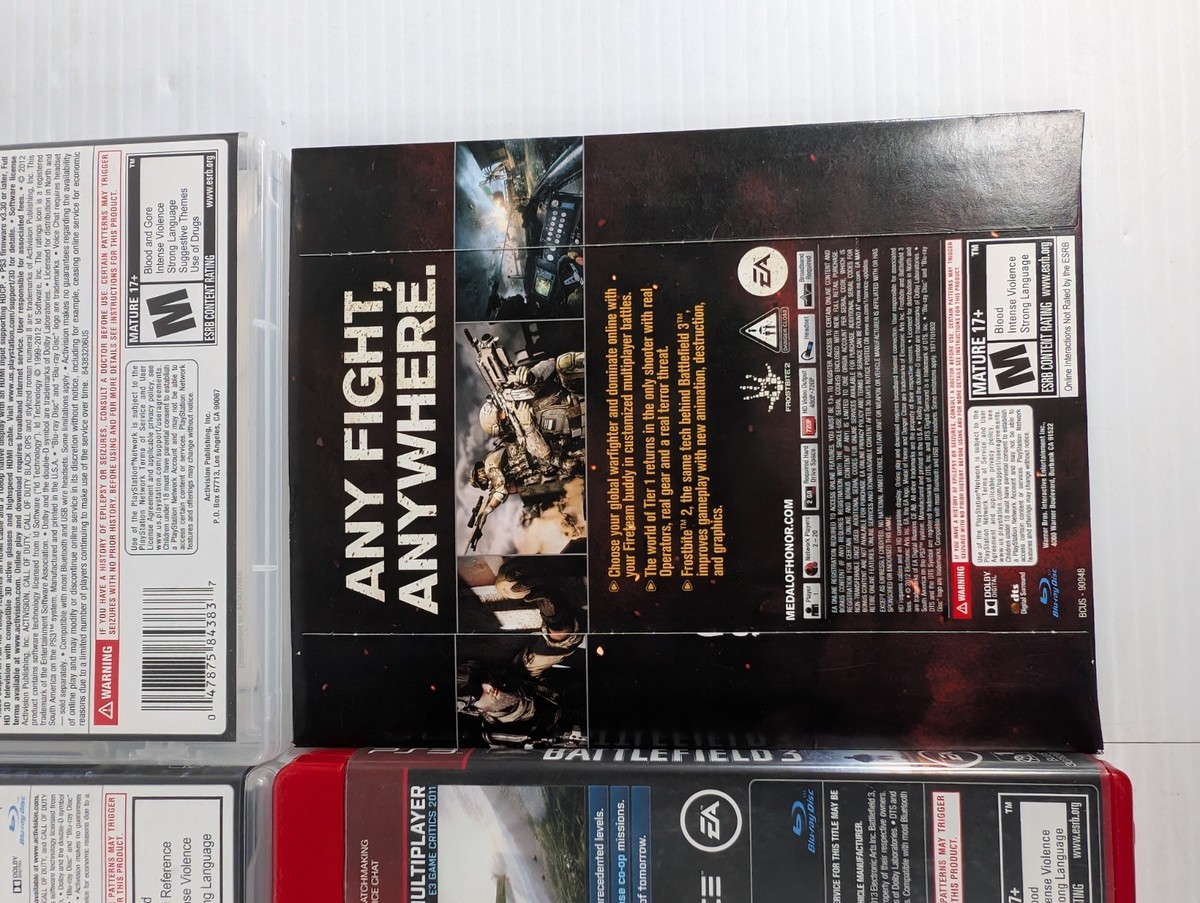This lot includes various popular PS3 games such as Call of Duty: Ghosts, Black Ops II, and Battlefield 3. These shooter games are part of the Call of Duty series published by Activision, known for their immersive gameplay and multiplayer features. The games are rated M for Mature and were released in 2009, offering exciting gaming experiences on the Sony PlayStation 3 platform. Perfect for fans of the genre looking to add some action-packed titles to their collection.