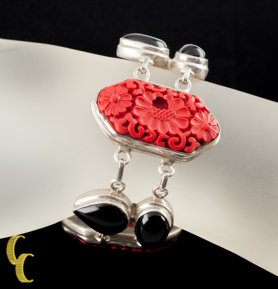 Gorgeous Sterling Silver Cinnabar and Onyx and 50 similar items