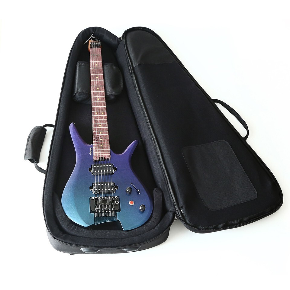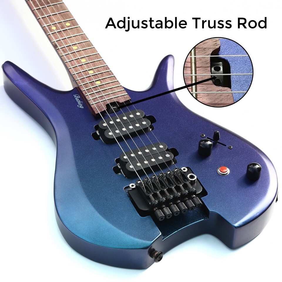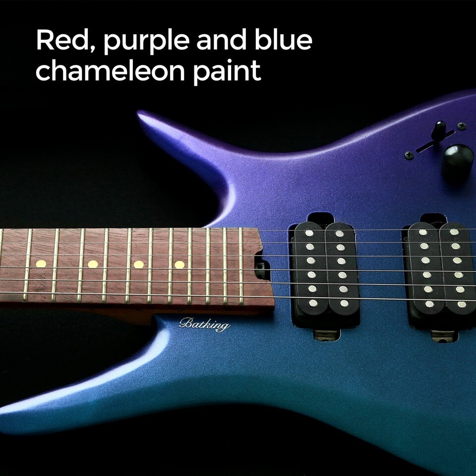 Batking Electric Travel Headless Guitar 6 String Double Locking Tremolo Chameleon Finish with Gigbag