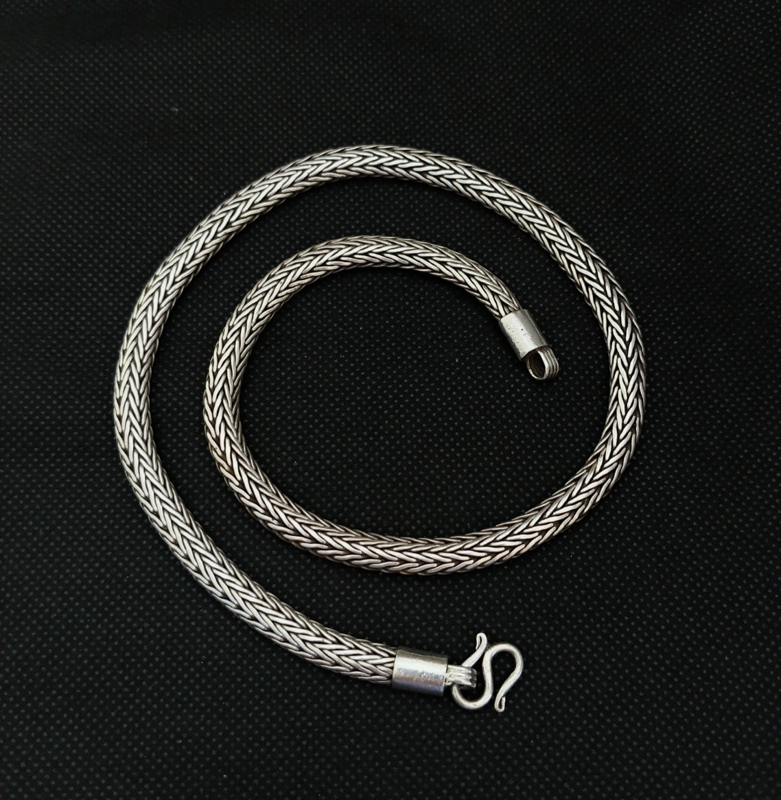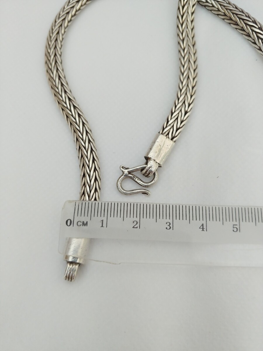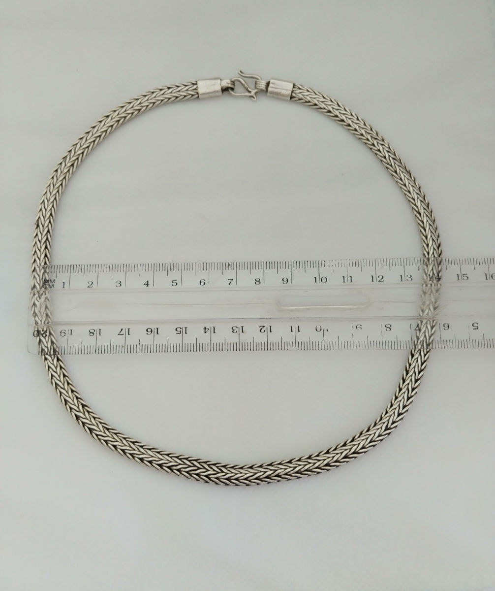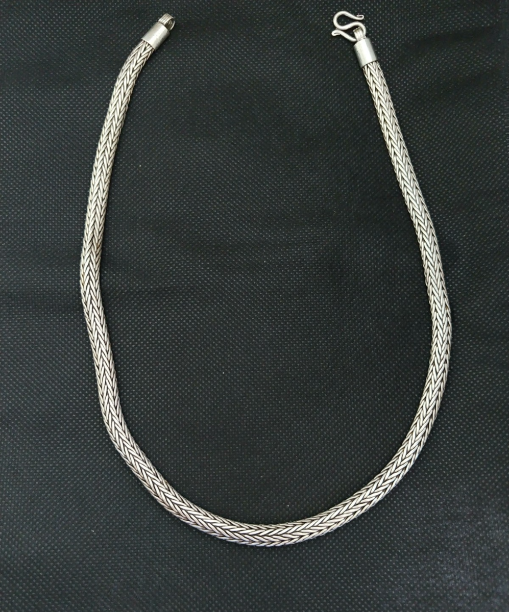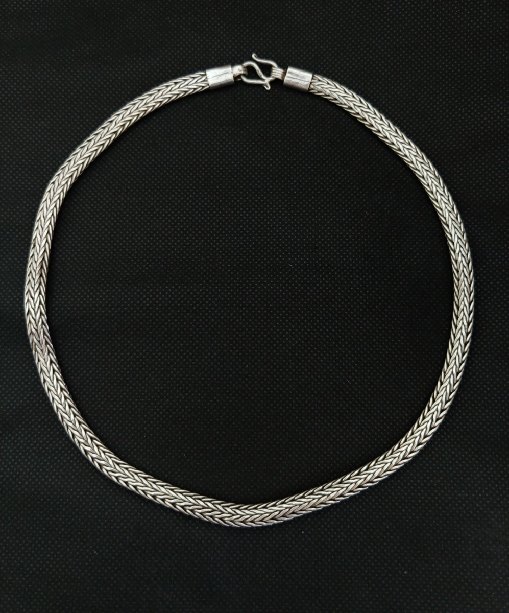 Sterling Silver Chain Necklace Foxtail 925 Bali Snake Solid Vintage Tribal Gift