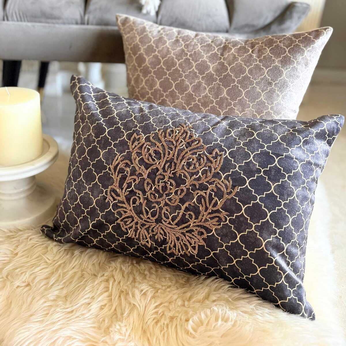 Malika Brown is an exclusive 100% handmade decorative lumbar pillow cover designed and created with intrinsic detailing. A perfect item to decorate your living room, bedroom, office, couch, chair, sofa or bed. The real color may not be the exactly same as showing in the pictures due to the color difference of monitors.