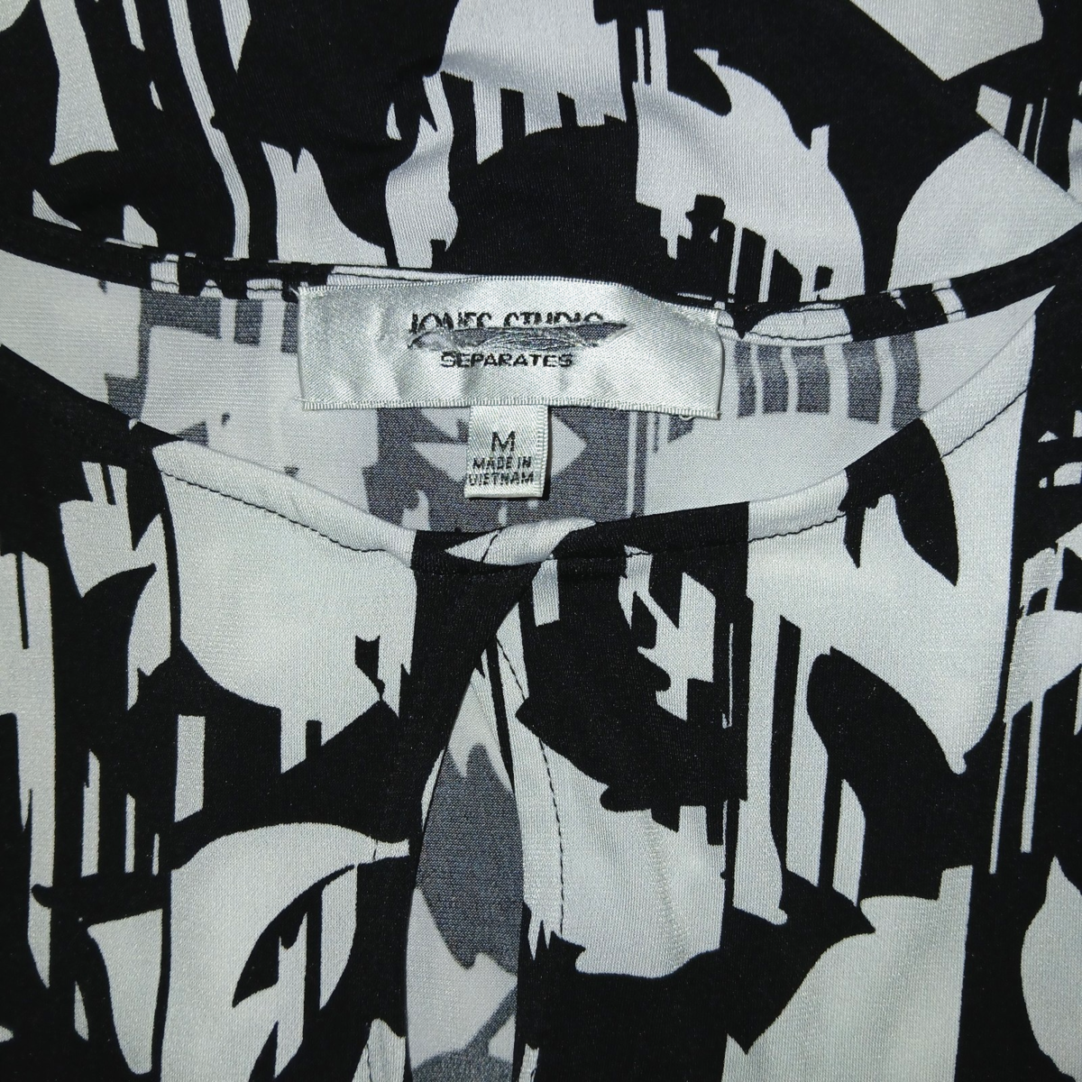 THIS IS AN ADORABLE LADIES JONES STUDIO SEPARATES CAP SLEEVE PULLOVER BLACK/WHITE KNIT DRESS IN A SIZE MEDIUM. IT IS NEW WITH DEFECTS AS THE INNER BRAND NAME TAG HAS BEEN CUT THROUGH THE CENTER.