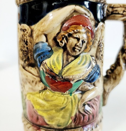 Beer Stein Mug Made In Japan German Woman Trimont Ceramic c1960s Antique HGS2D