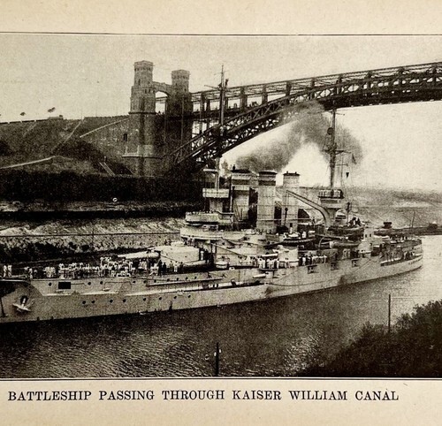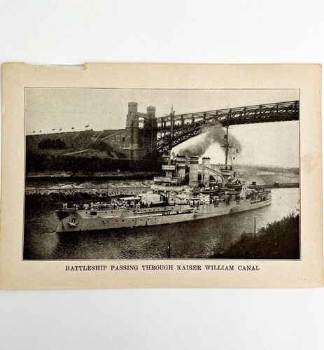 1914 WW1 Print Battleship In Kaiser William Canal Antique Military Collectible