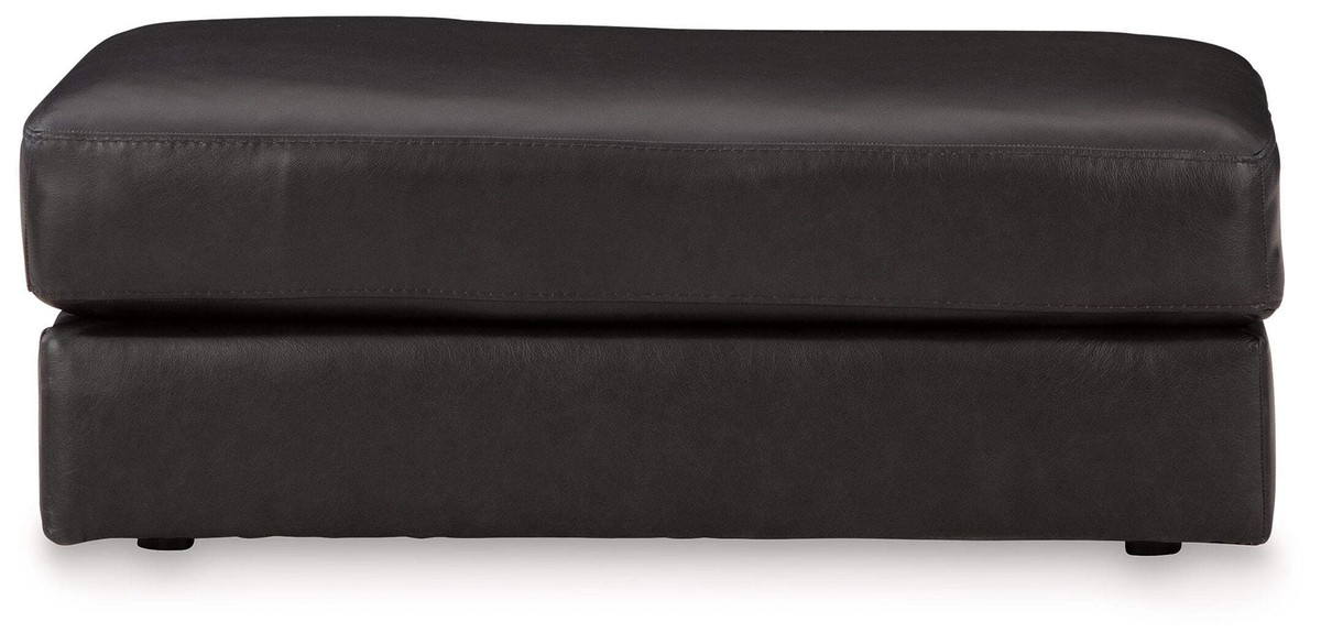 Keen on crisp, contemporary design? Adore the pleasure of leather? Look no further. This ottoman satisfies on every level. Richly textured and decadently supple, the cushion is wrapped with expertly matched leather and faux leather upholstery in an on-trend onyx tone. The ottoman's clean-lined profile completes its simply chic appeal.Additional Dimensions Leg height: 1.25" Minimum width of doorway for delivery: 30" Product Features Corner-blocked frame Firmly cushioned High-quality foam cushion wrapped in poly fiber 100% top grain leather covers the cushion top; skillfully matched faux leather covers the remaining areas Lightly waxed pullup look; lightly buffed and embossed with protective finish to prevent scratches Due to its natural origin, real leather can show individual characteristics such as healed scars, growth marks, grain variation and shade variation Natural variations make each hide unique and do not detract from the wearing qualities of leather Non-skid legs Amiata - Ottoman - Onyx44.0"W x 24.0"D x 17.0"H - 33.0 lb