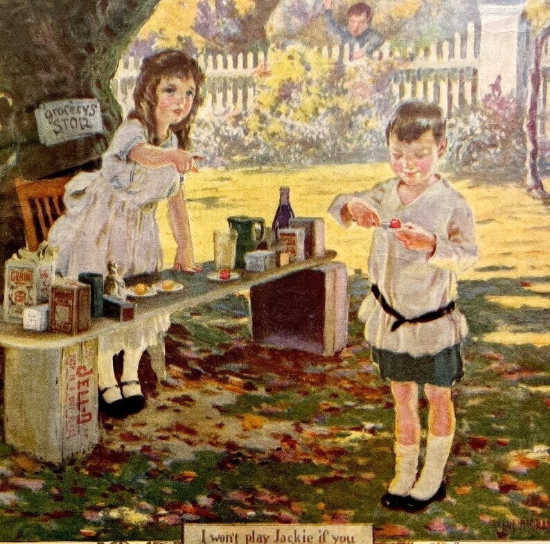 1923 JELL-O XL Advertisement I Won't Play Jackie 14 x 11.25 Dessert Ephemera