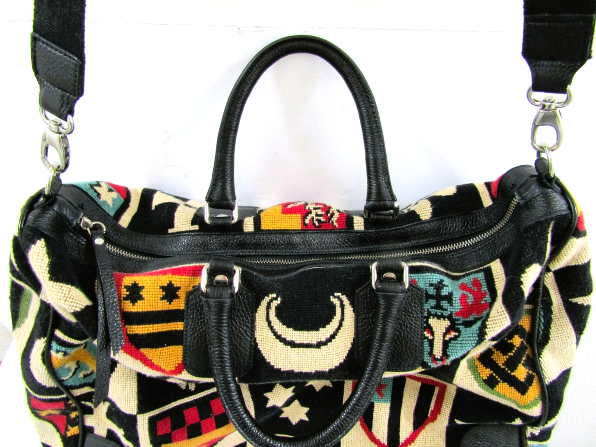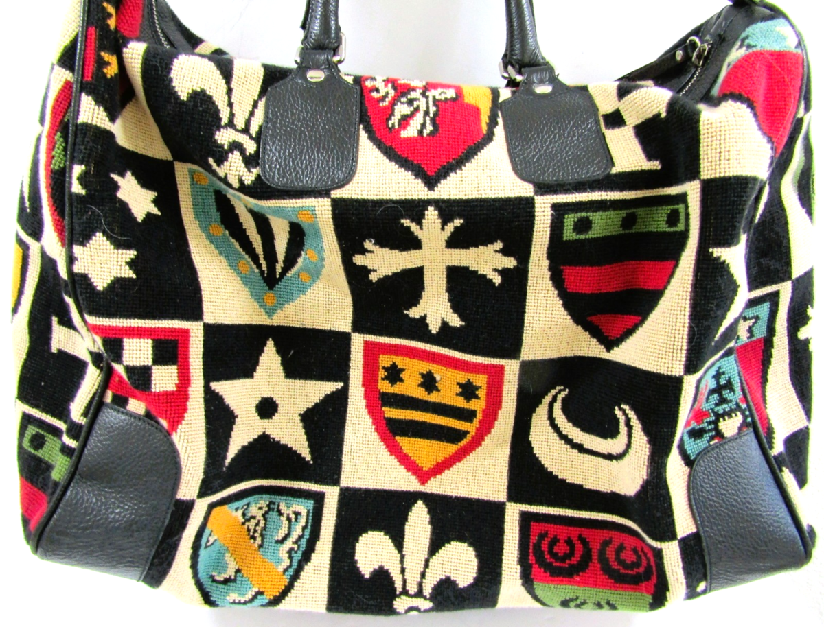 Stubbs Wootton Crest Black Needlepoint Weekender Bag
