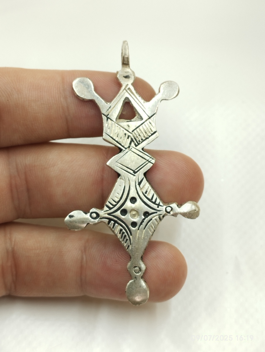 Tuareg Cross Pendant – Handmade Silver Tribal Berber Amulet from Morocco