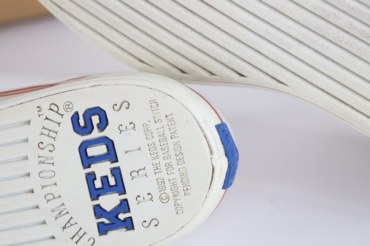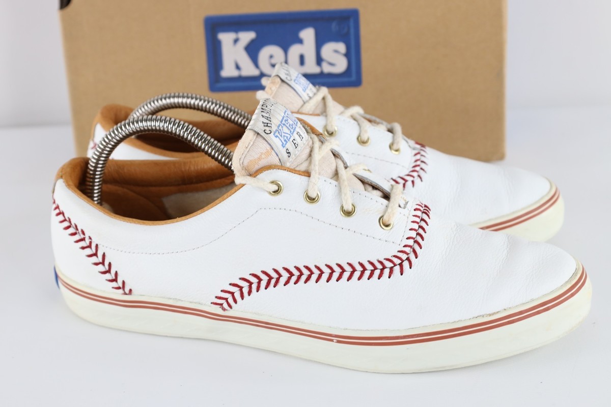 Vtg 90s Keds Womens 10 Distressed Leather Baseball Sneakers Shoes White w Box