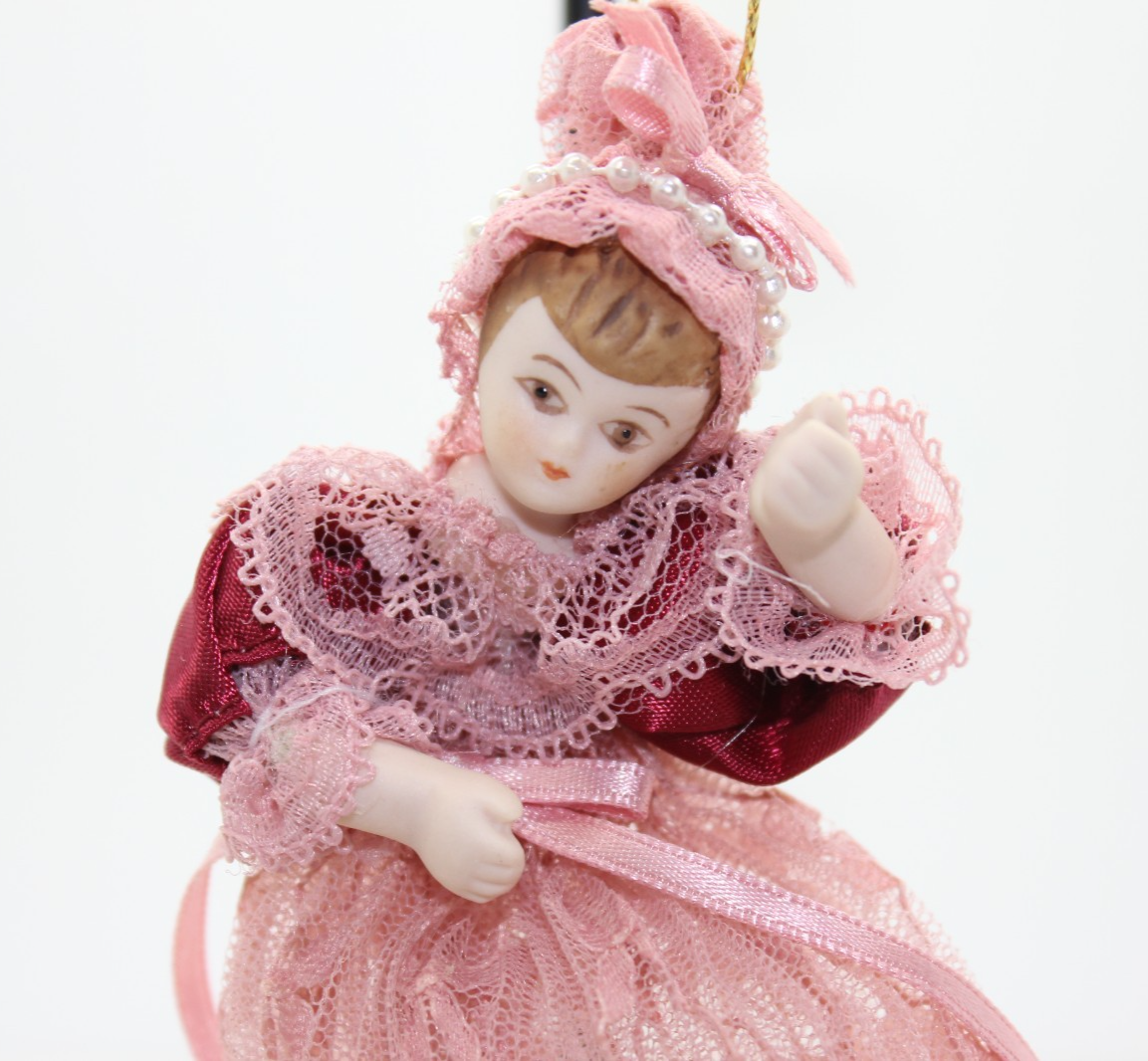 Vintage Kurt Adler Victorian Doll Ornament Porcelain Christmas Decor Lace Dress