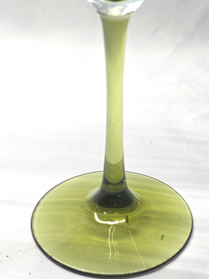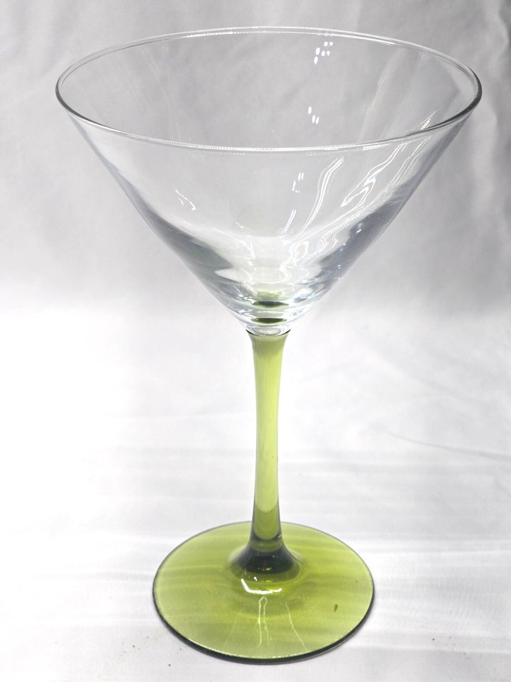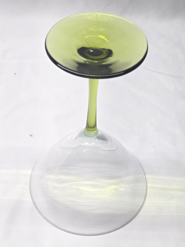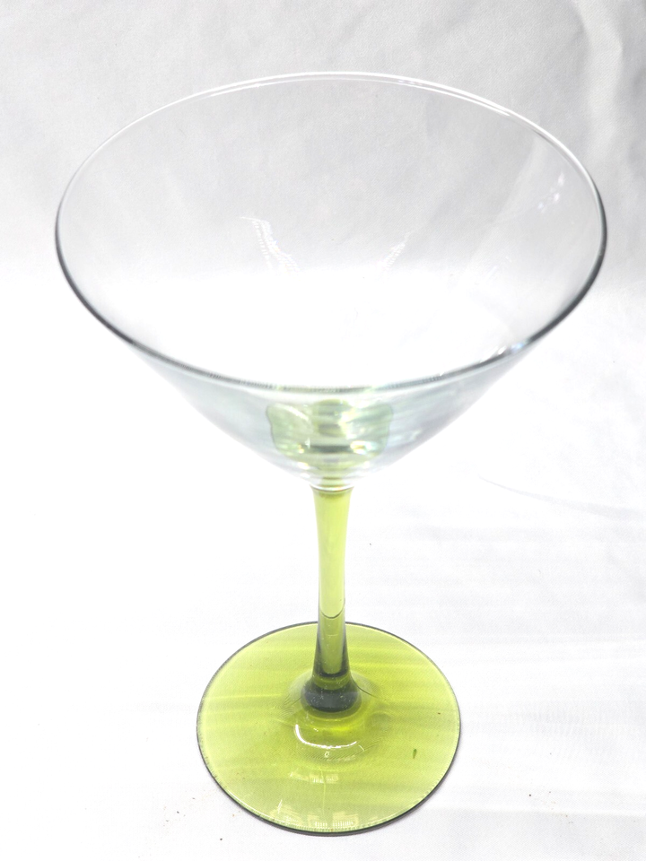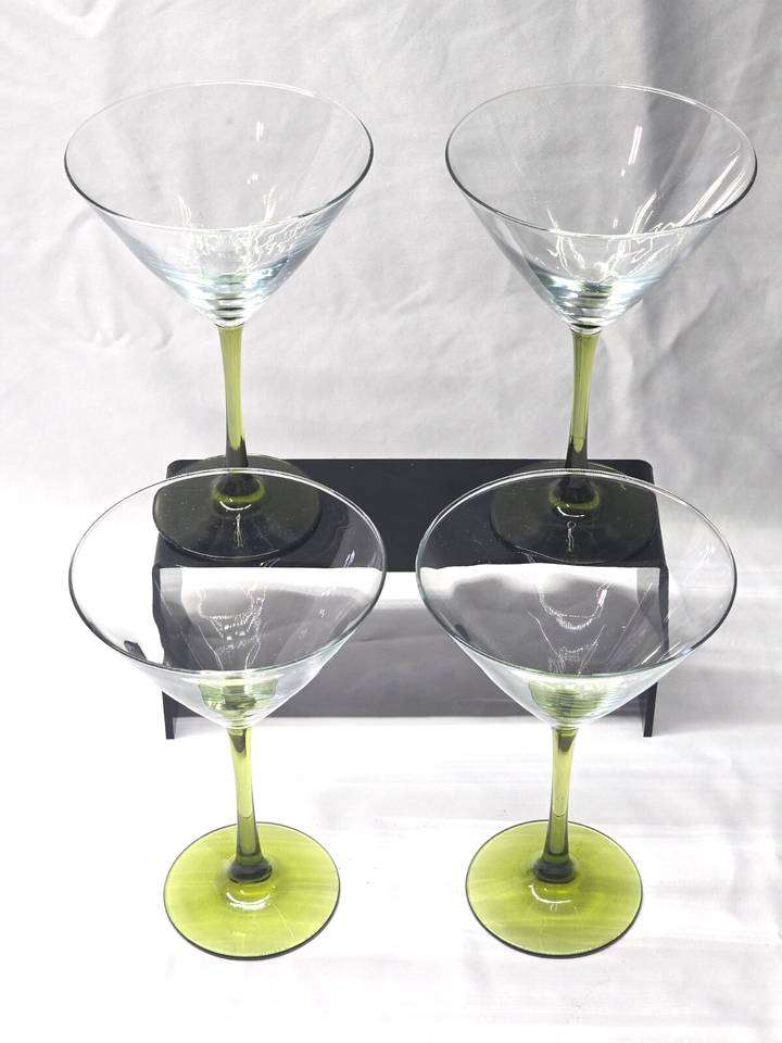 CRISTAL D'ARQUES 7.375" Martini Margarita Glass OLIVE GREEN Stem - Set Of 4