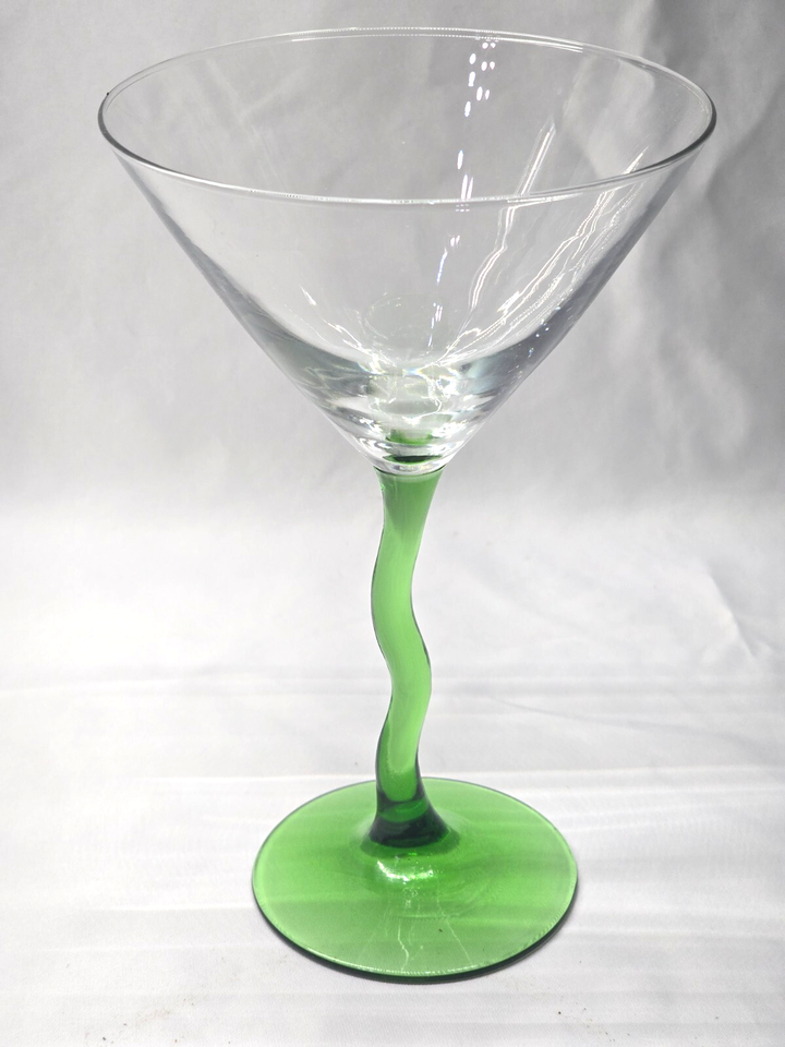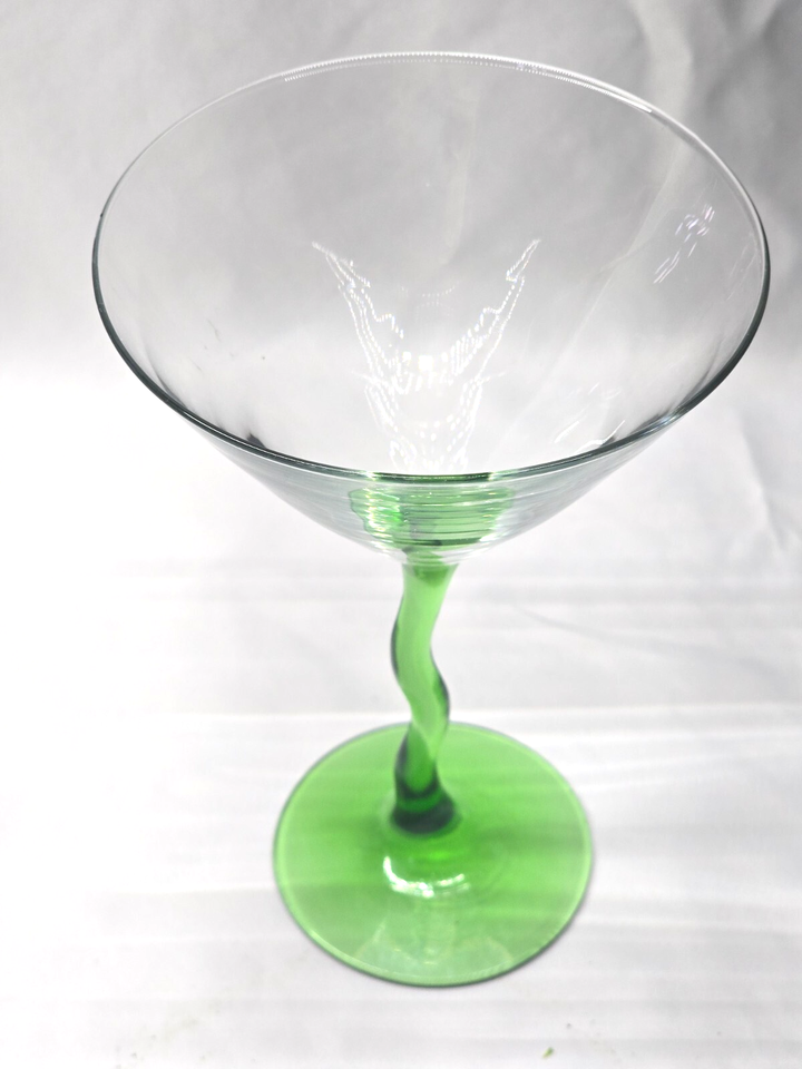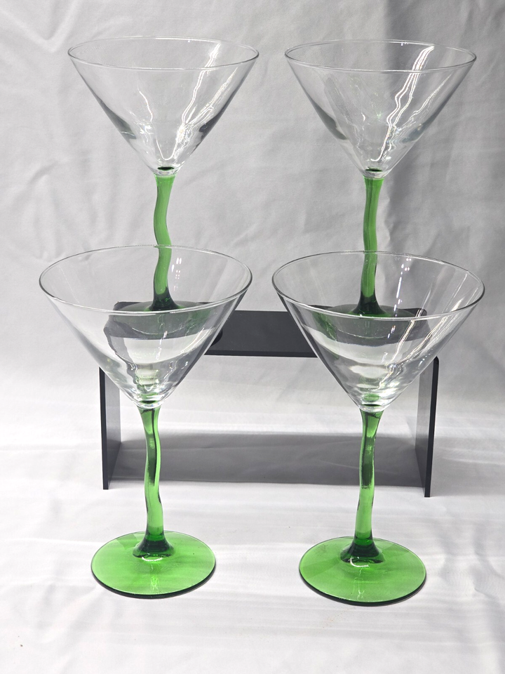 LIBBEY 7.625" Martini Margarita Glass COURBE Zig-Zag Emerald Stem - Set Of 4