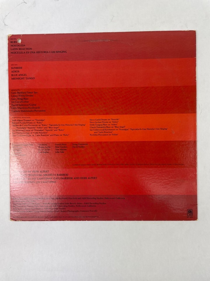 -Featuring : Gato Barbieri Ruby Ruby Sunride Adios Blue Angel Midnight Tango Vinyl Record -Record and sleeve in nice used condition! -Professionally packaged for safe shipping -Shipping is USPS media mail for U.S. addresses only