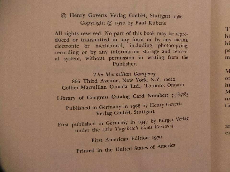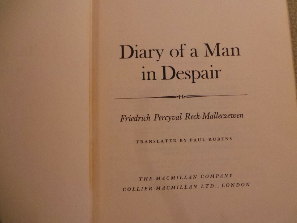 Diary of a Man in Despair by Reck-Malleczewen HC Macmillan 1st US Ed 1970 VG