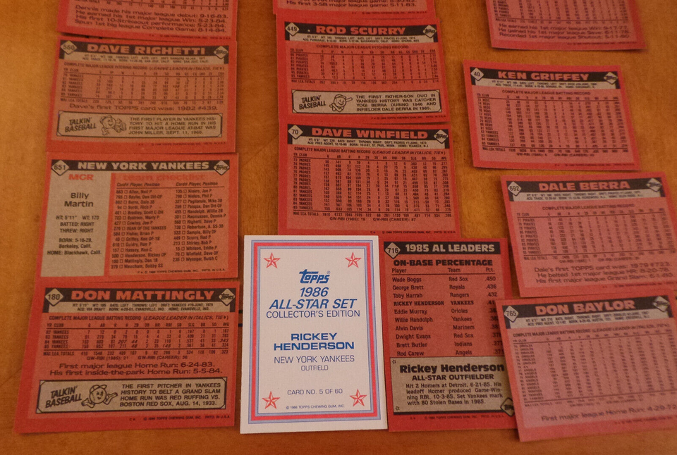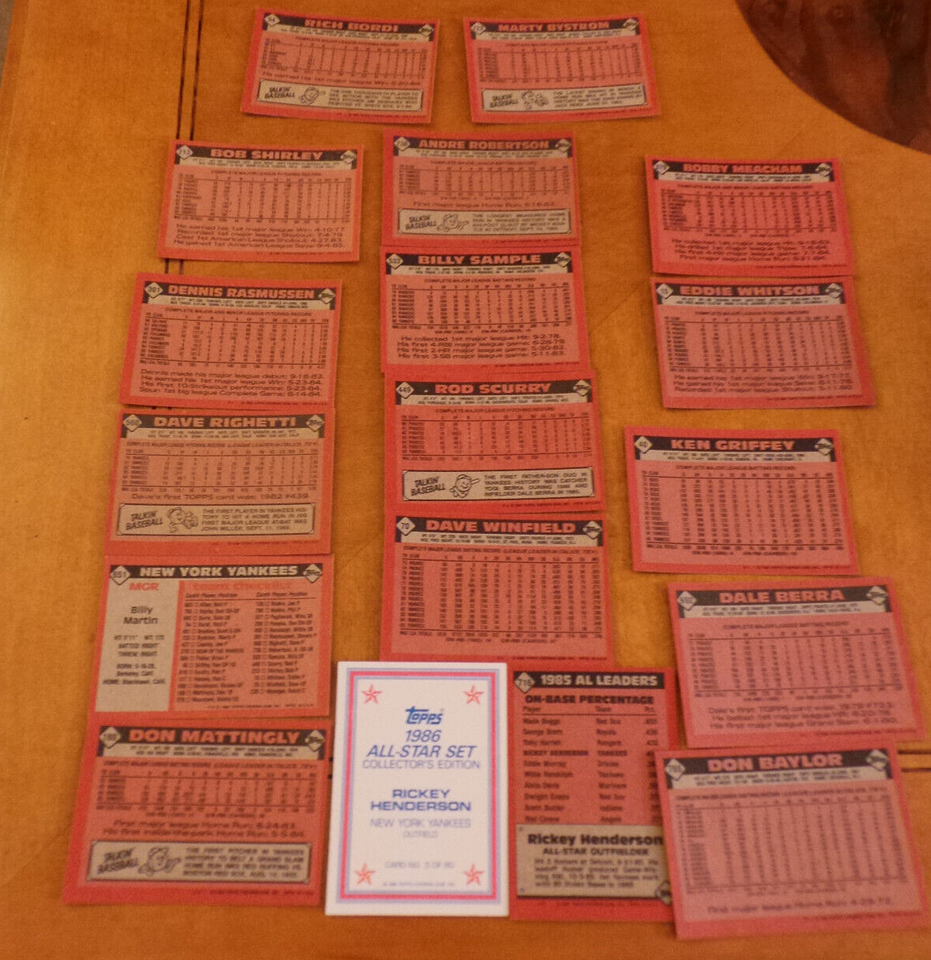 Lot of 18 Topps Cards NY Yankees 1986 w Ricky Henderson All Star NM