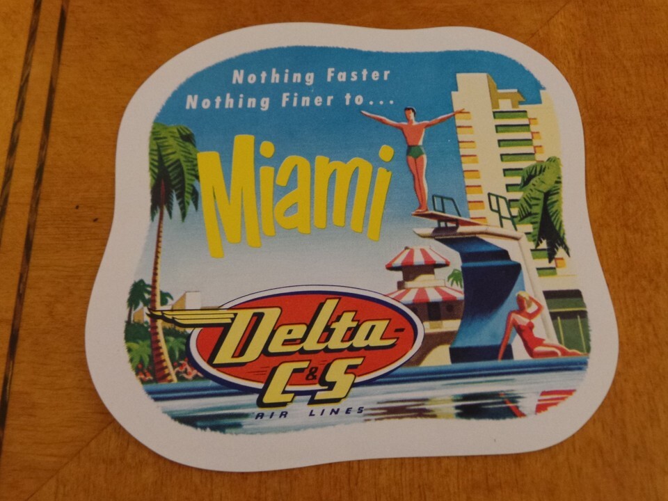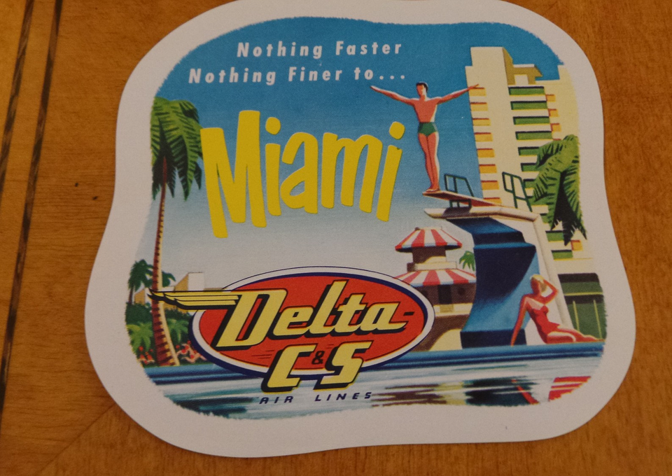 vintage Airline Luggage Label for Delta C5 Airlines, Miami Nothing Faster, Nothing finer