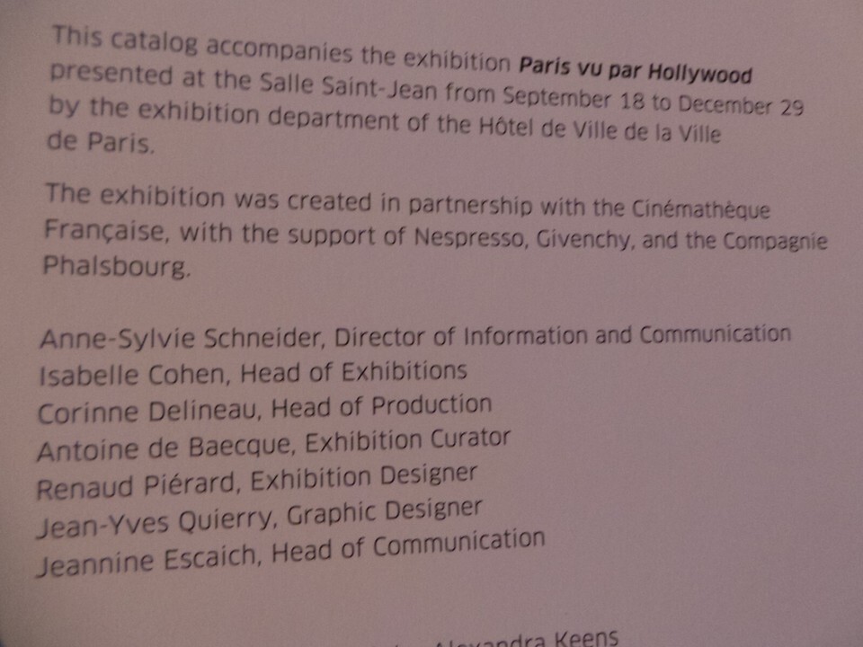 "Paris by Hollywood" by Antoine De Baecque from 2012. This book / catalog accompanied the Exhibition held at the Salle St Jean.