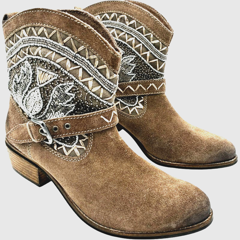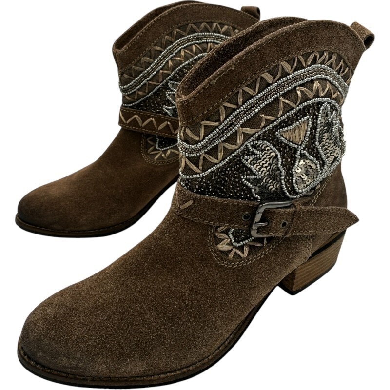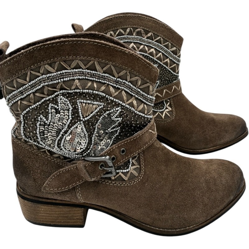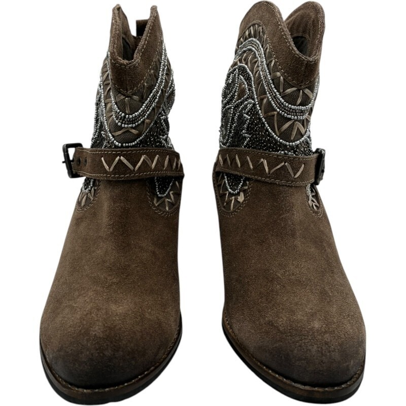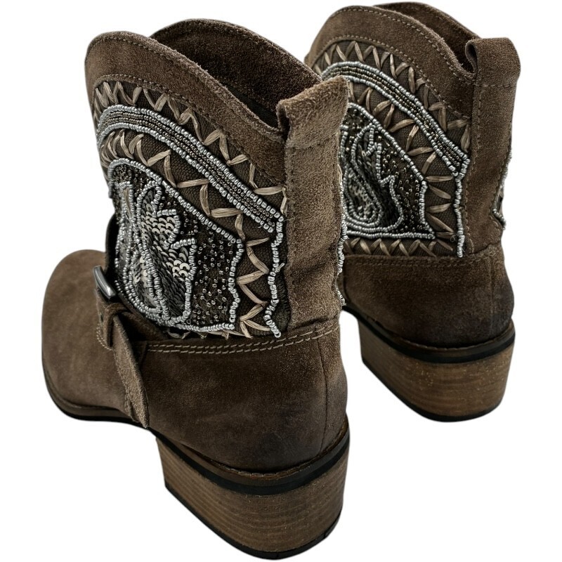Naughty Monkey women's Deco Stych Ankle Bootie Taupe Leather NMBT0153 sz 10