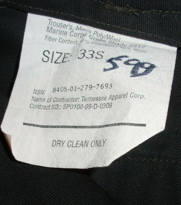 USMC Marine Corp Dress Alpha 33S Uniform Green Shade 2212 Trousers Pants