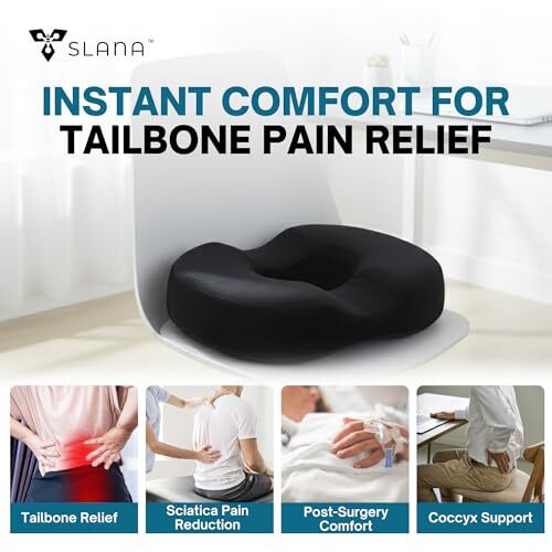 Product description: Experience all-day comfort and targeted relief with the Slana Donut Pillow Seat Cushion, thoughtfully designed to ease discomfort from tailbone pain, hemorrhoids, postpartum recovery, bed sores, coccyx injuries, and prolonged sitting. Its ergonomic ring shape promotes even weight distribution, reducing pressure on sensitive areas and encouraging faster healing. Crafted from premium high-density foam, this cushion delivers gentle yet firm support without flattening over time. The plush velvet removable cover adds a luxurious feel against the skin, while its hidden zipper makes it easy to remove and machine wash, keeping your cushion fresh and hygienic for daily use. Experience targeted relief and all-day comfort with the Slana Doughnut Pillow for Tailbone Pain, expertly designed to ease discomfort from tailbone injuries, hemorrhoids, postpartum recovery, bed sores, sciatica, and prolonged sitting. This sitting pillow for chair use features an ergonomic ring shape that evenly distributes body weight, reducing pressure on sensitive areas and promoting faster healing. Made from premium high-density foam, the cushion retains its shape without flattening, making it ideal as a butt cushion for long sitting, bed sore cushions for butt, or coccyx cushion for tailbone pain. The plush velvet removable cover feels soft against the skin, while a hidden zipper allows easy removal for machine washing, ensuring your sitting pillow stays fresh and hygienic. The non-slip bottom keeps this circle pillow securely in place on office chairs, car seats, dining chairs, or wheelchairs. Breathable materials prevent heat build-up, making it an excellent sciatica pillow for sitting or butt pillows for sitting tailbone relief during long hours at work or travel. Lightweight and portable, the Slana Donut Pillow is versatile for home, office, and on-the-go comfort. Whether you need a doughnut pillow for hemorrhoids, a sciatica pillow, or a reliable travel companion